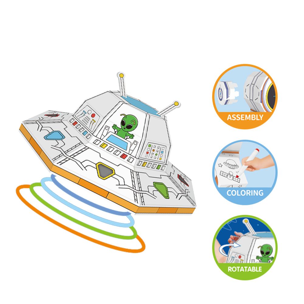 - Build & Decorate Your Own UFO: Includes a fun cardboard UFO structure and 3 color pens for endless creative play.