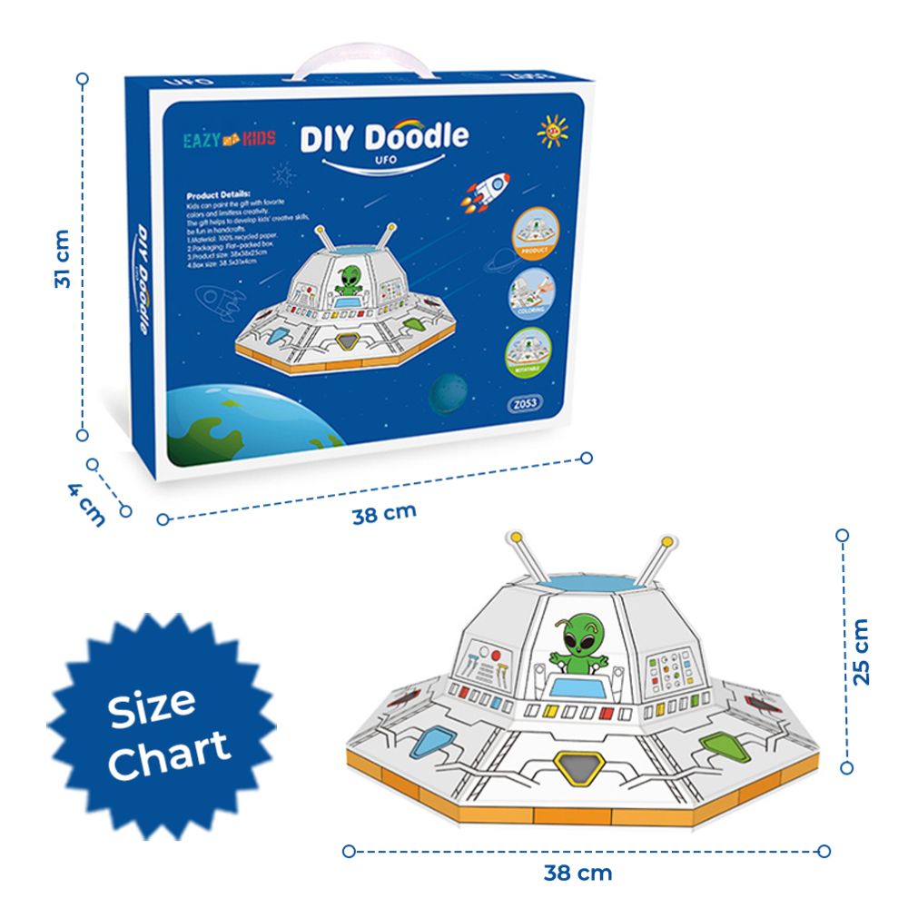 Let your child's creativity take flight with the Eazy Kids DIY UFO Set! This fun, hands-on cardboard activity is perfect for kids aged 3 years and above. The set includes a UFO-shaped structure made of eco-friendly cardboard and 3 vibrant color pens, letting little ones design and personalize their own flying saucer.
