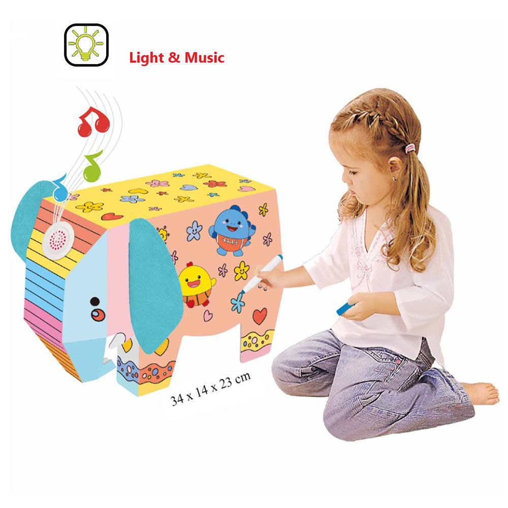 - Elephant-shaped doodle coloring kit with music and light features