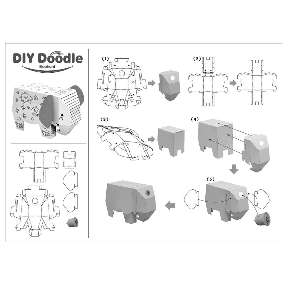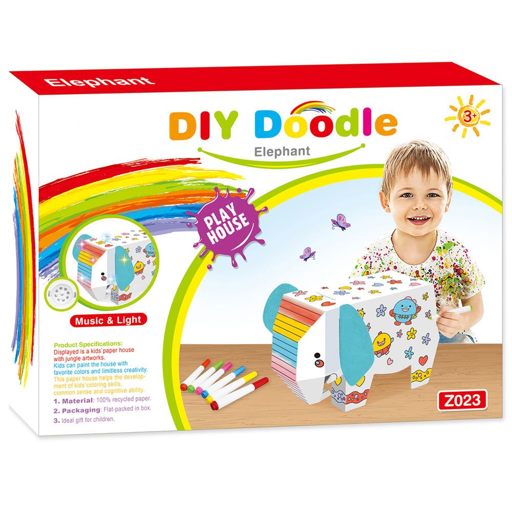 The Eazy Kids Elephant Doodle Kit adds fun to learning with music and lights! Kids can build and color this 3D elephant model using the included sketch pens. Encourages creative play and fine motor skills. A thoughtful gift for birthdays or educational play. Recommended for ages 3+.
