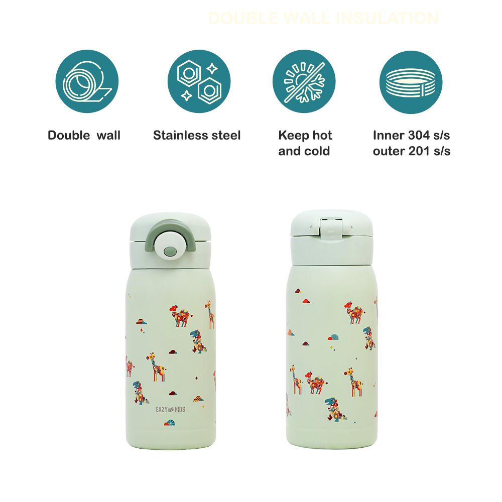 Eazy Kids Double Wall Insulated School Water Bottle 350ml - Green