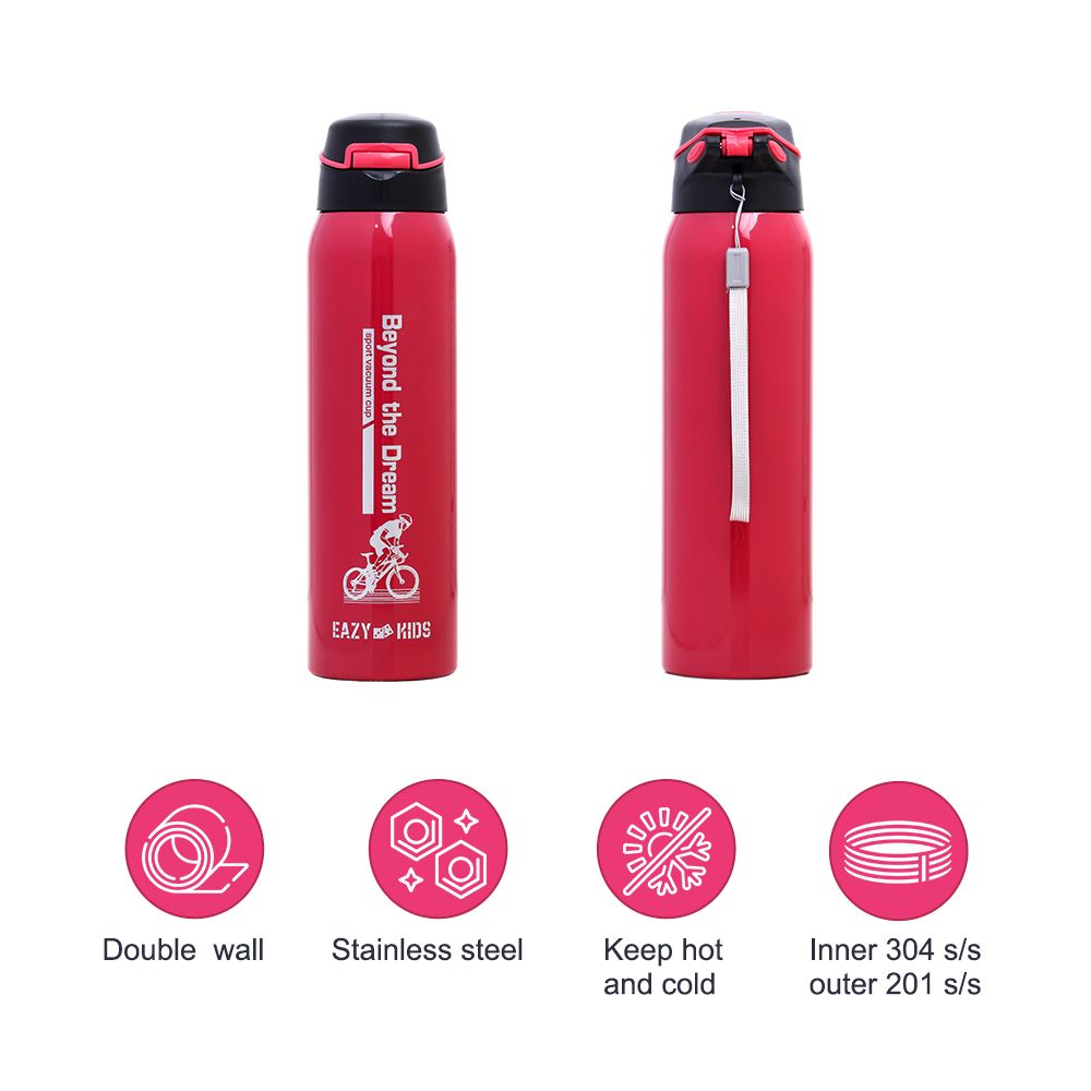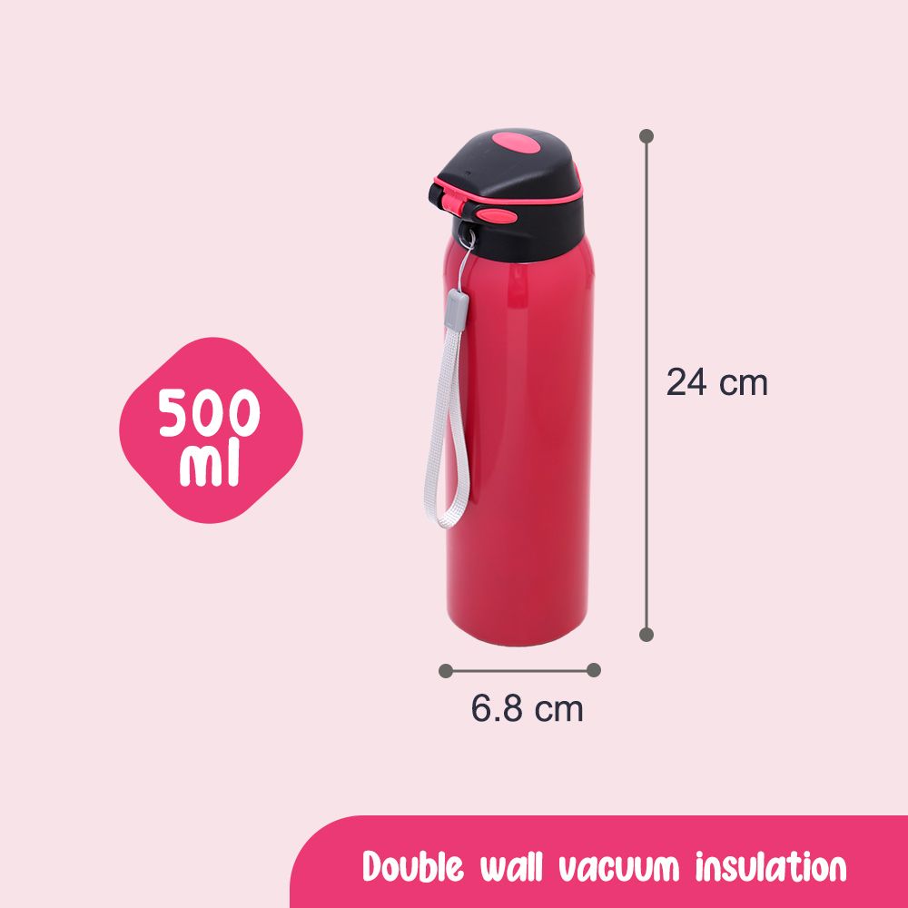 Eazy Kids Double Wall Insulated School Water Bottle 500ml - Pink