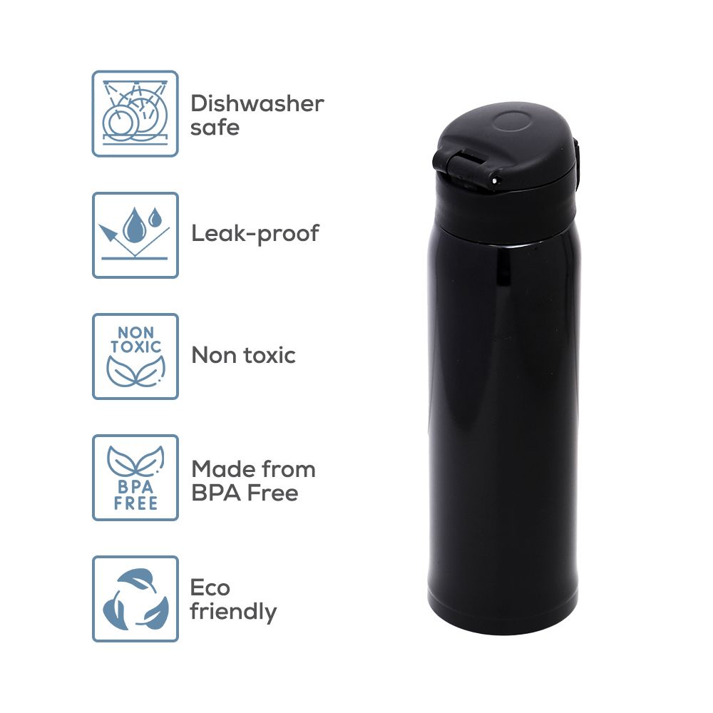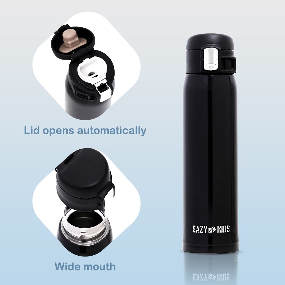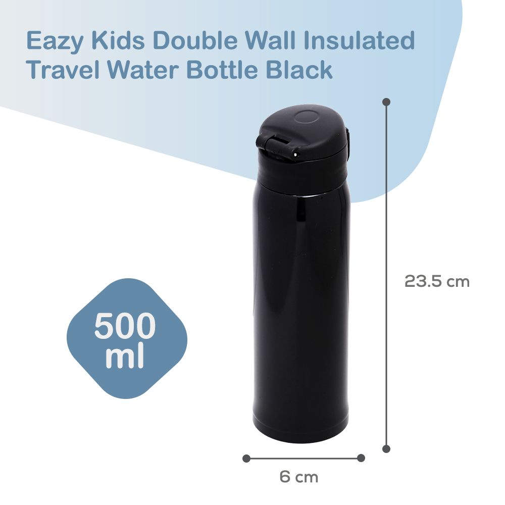 Eazy Kids Double Wall Insulated Travel Water Bottle 500ml - Black