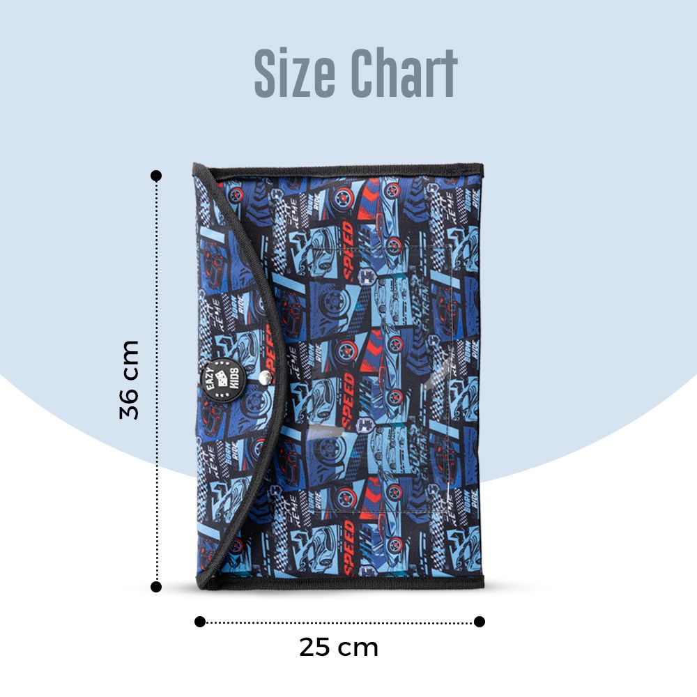 The Eazy Kids File Folder keeps schoolwork, drawings, and certificates neat and organized. Measuring 36x25cm, it's ideal for A4 documents. The secure snap button closure keeps papers in place, while the themed design adds fun and excitement. Crafted from durable polyester, it's great for school, home, or travel. Includes: 1x File Folder.