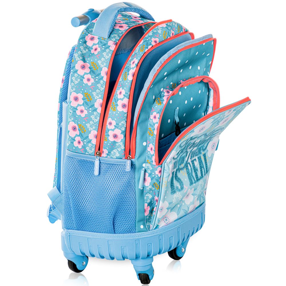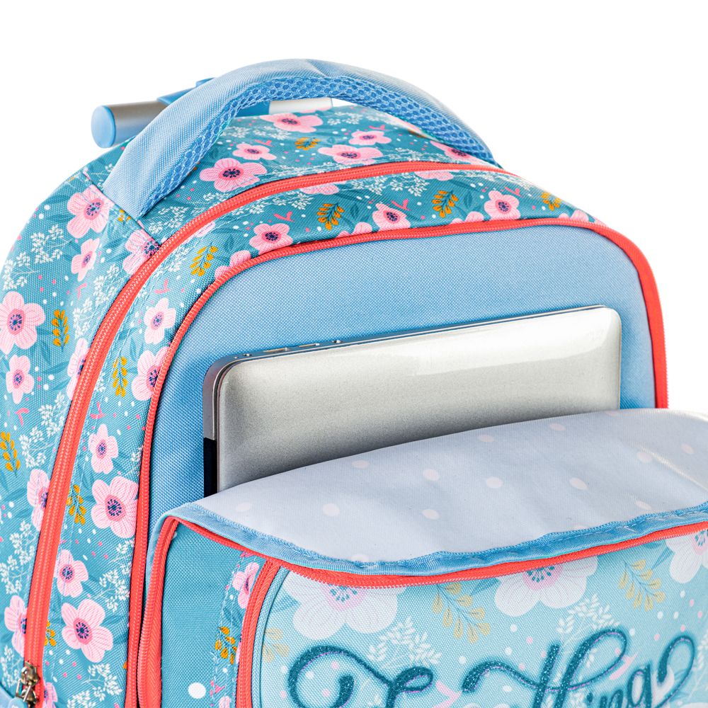 - Floralprint trolley set with backpack, lunch bag, and pencil case.