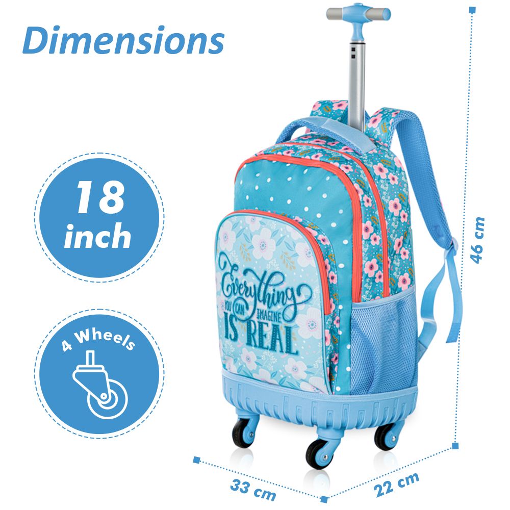 The Eazy Kids Glitter Flora 3-in-1 Trolley Backpack Set brings sparkle to school days with a stylish floral design. This 18-inch backpack features a 30L capacity, 9 pockets, padded straps, and a smooth 4-wheel trolley system with a telescopic handle. A 14-inch laptop sleeve and multiple compartments keep items organized. The insulated lunch bag includes side pockets and a two-way handle, while the roomy pencil case keeps stationery tidy. Built from durable polyester, this set is perfect for tweens who want fashion, function, and fun all in one.