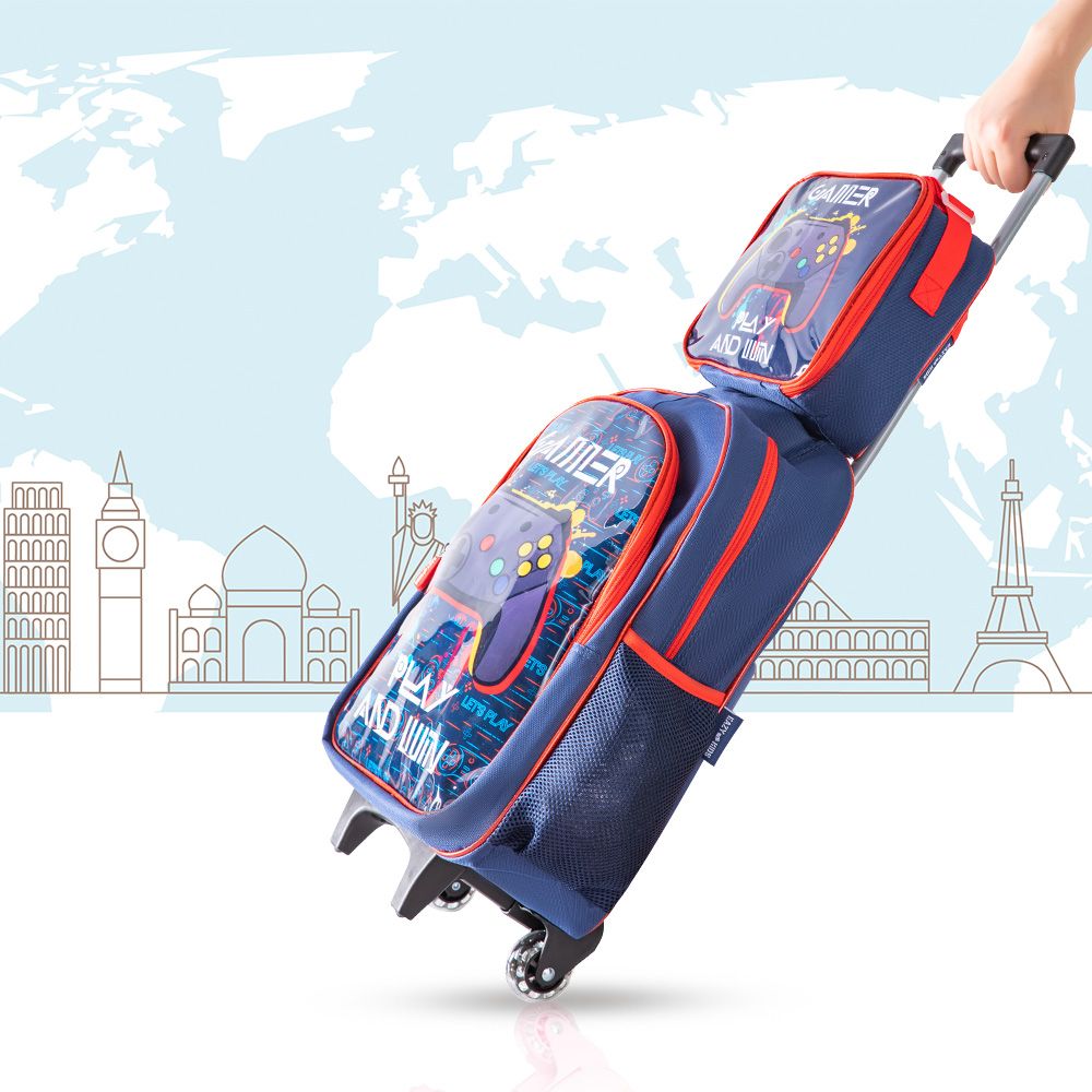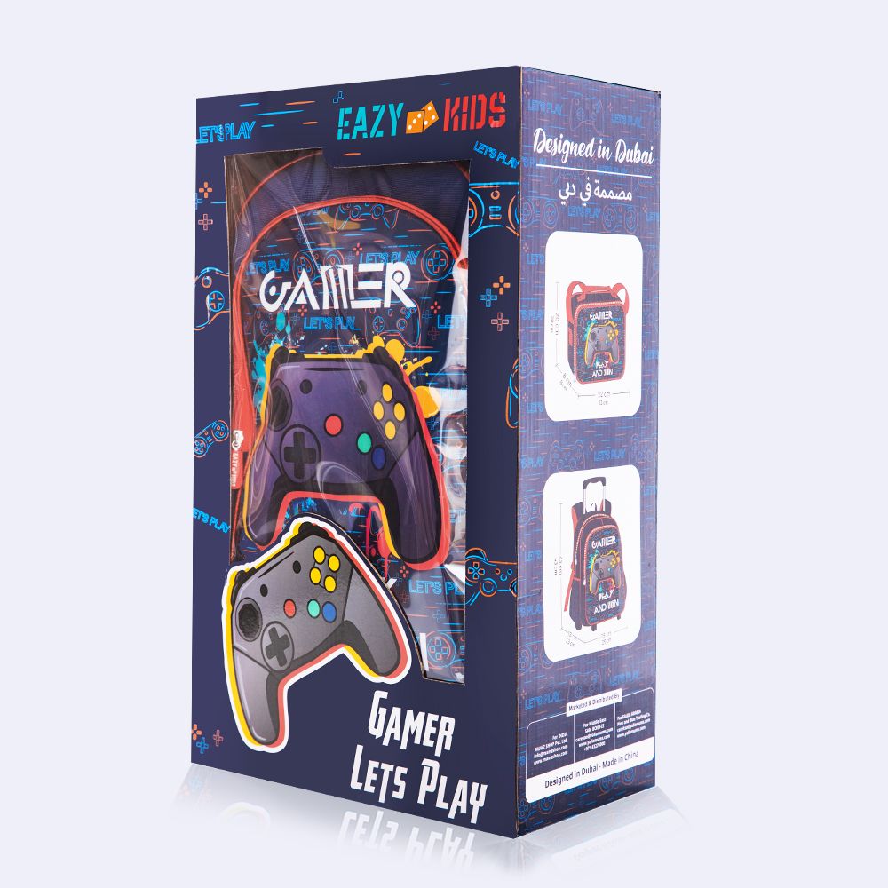 - Eazy Kids 5 - in - 1 boys backpack includes 1 School backpack with trolley, 1 Lunch Bag, Lunch Box, Water Bottle and 1 Pencil Case.