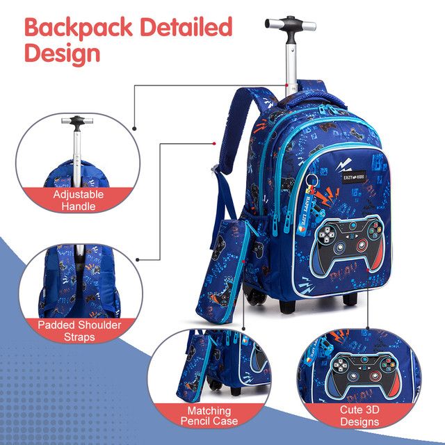 The Eazy Kids Chasing Dreams T-Rex Set is a 3-in-1 school solution featuring an 18-inch trolley backpack, lunch bag, and pencil case. With a 29L capacity, laptop sleeve, 6 pockets, and 3 compartments, the backpack also boasts a 2-wheel trolley system and padded straps for comfort. The lunch bag includes bottle pockets and a cutlery slot, while the large pencil case organizes writing tools with ease. Built from premium grey fabric, this durable and stylish set is ideal for little adventurers chasing dreams in class and beyond.