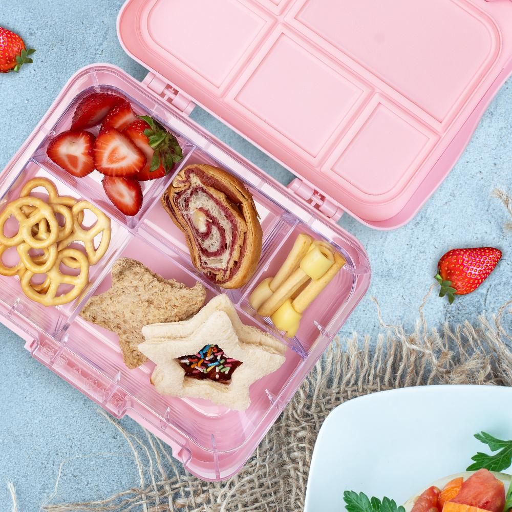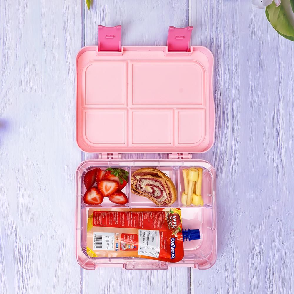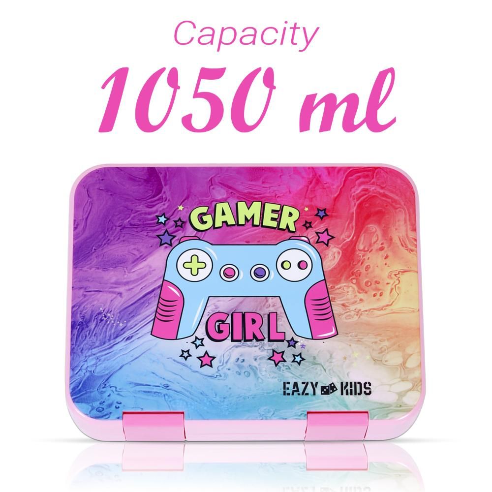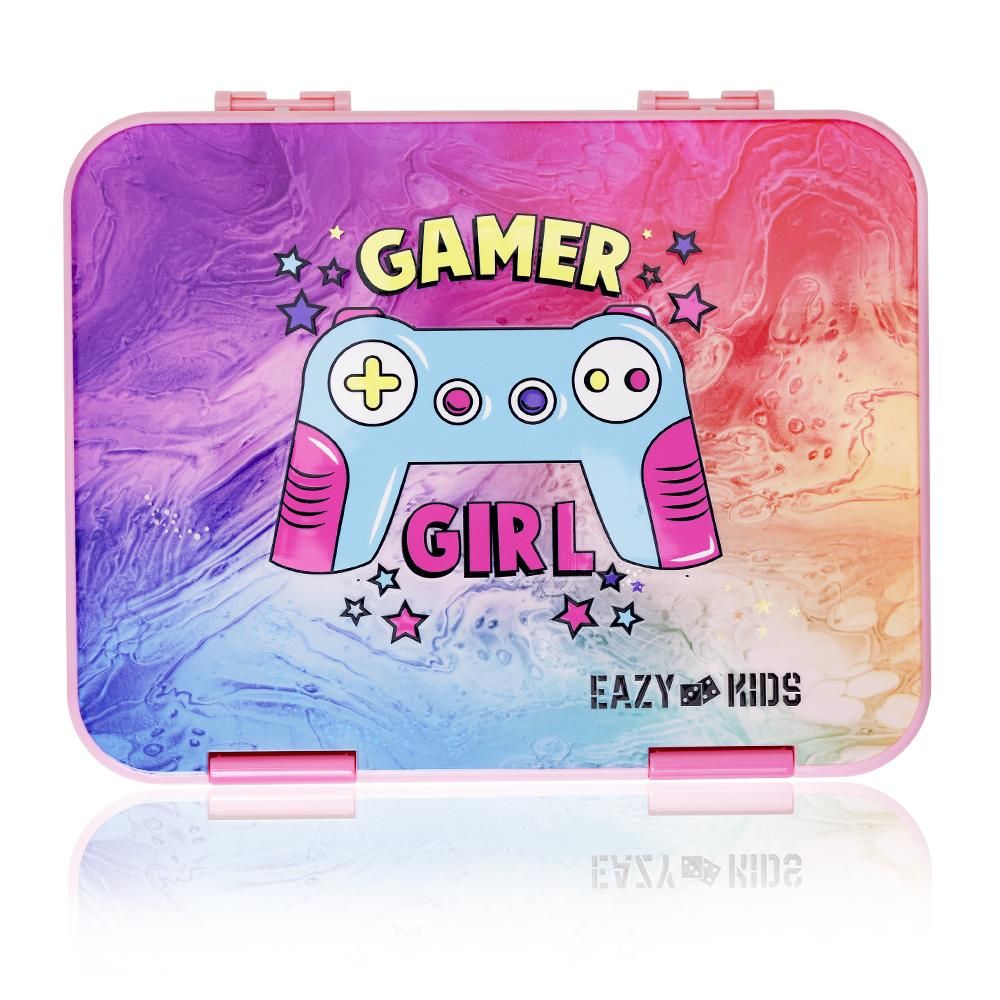 Customize your kid’s lunch with the convertible Eazy Kids Bento Box - Gamer Girl. Made of BPA-free Tritan, it includes a removable divider to switch between 4 or 5 compartments. Designed with a slant mouth opening for easy food access, it features a silicone-lined leakproof layer that detaches for simple cleaning.