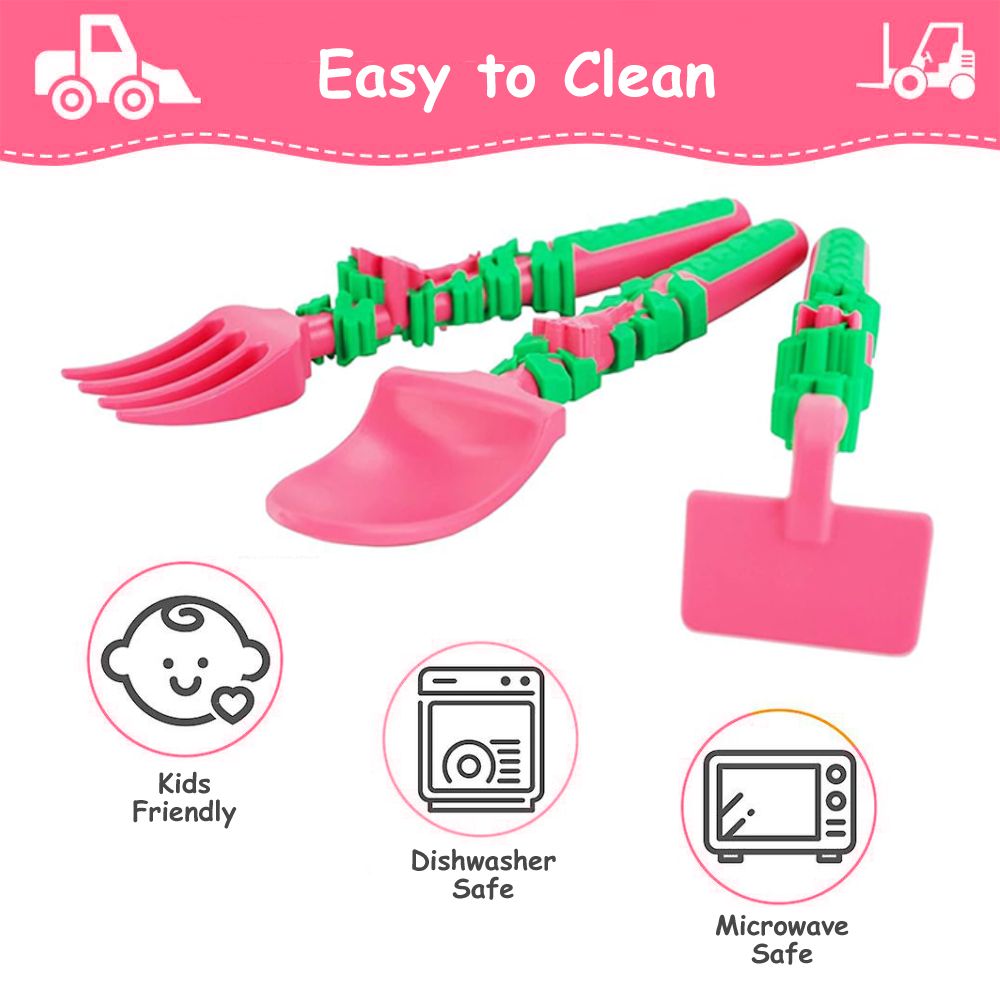 - Themed cutlery makes self-feeding a fun and engaging activity