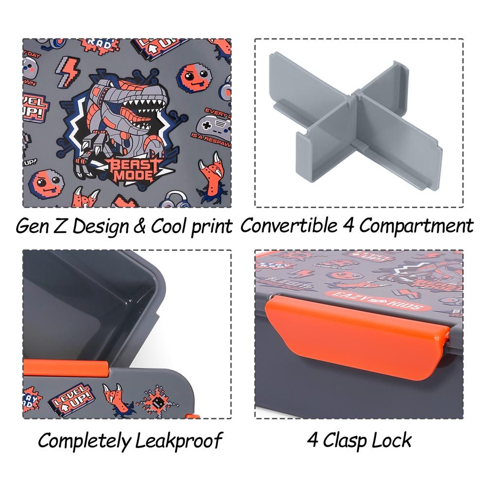 Eazy Kids Gen Z Lunch Box 850ml - Grey