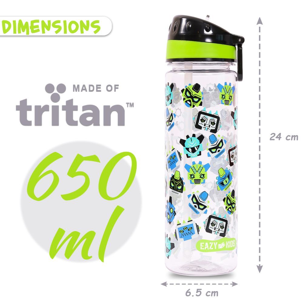 We make hydration time fun! The Eazy Kids Gen Z Tritan Water Bottle (650 ml) keeps your child refreshed all day. Made from BPA- and phthalate-free, food-grade Tritan, it’s non-toxic, eco-friendly, and built for everyday use. The silicone-lined sipper lid is fully leakproof, and the bottle is freezer safe (–18°C) and dishwasher safe (top rack, lid removed). With vibrant prints, a lightweight design, and a carry handle for easy transport, it’s perfect for school, sports, or outings. Pair with a matching Eazy Kids lunch box for the full set!