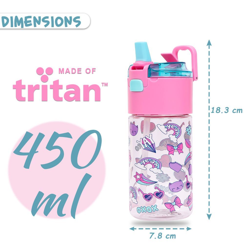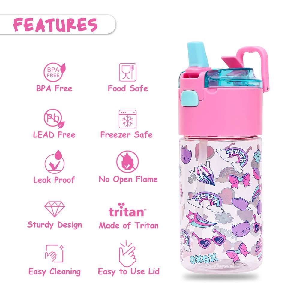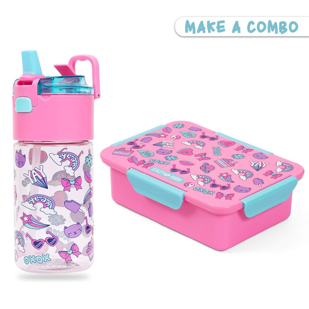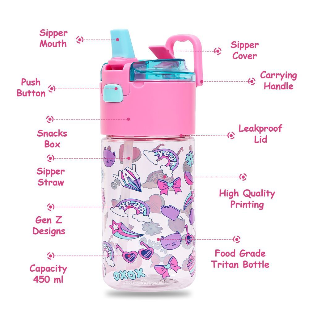 Hydration and snacking in one cool combo! The Eazy Kids Tropical Tritan Water Bottle (450 ml) is made from BPA- and phthalate-free, food-grade material that’s non-toxic, eco-friendly, and super durable. It features a leakproof, silicone-lined sipper lid and a clever flip-open snack box—perfect for mid-play munchies or travel treats.
