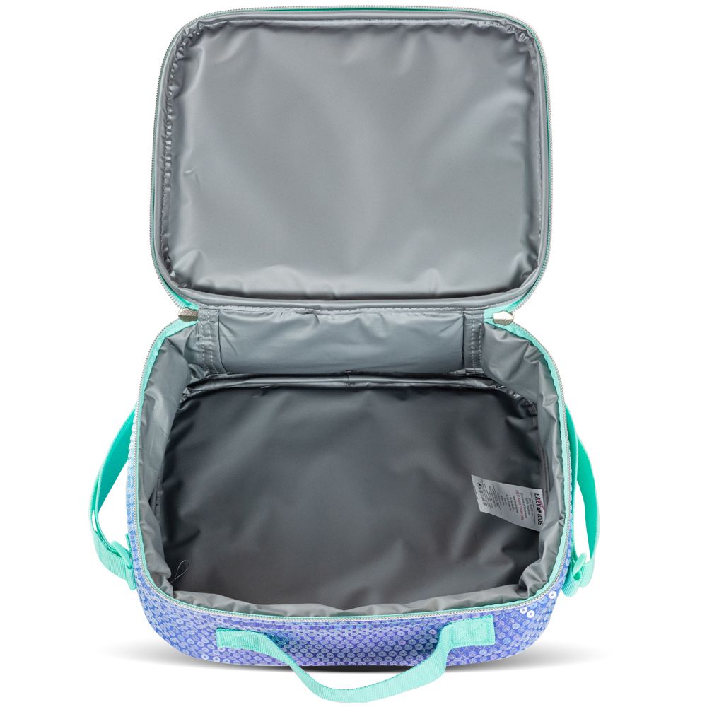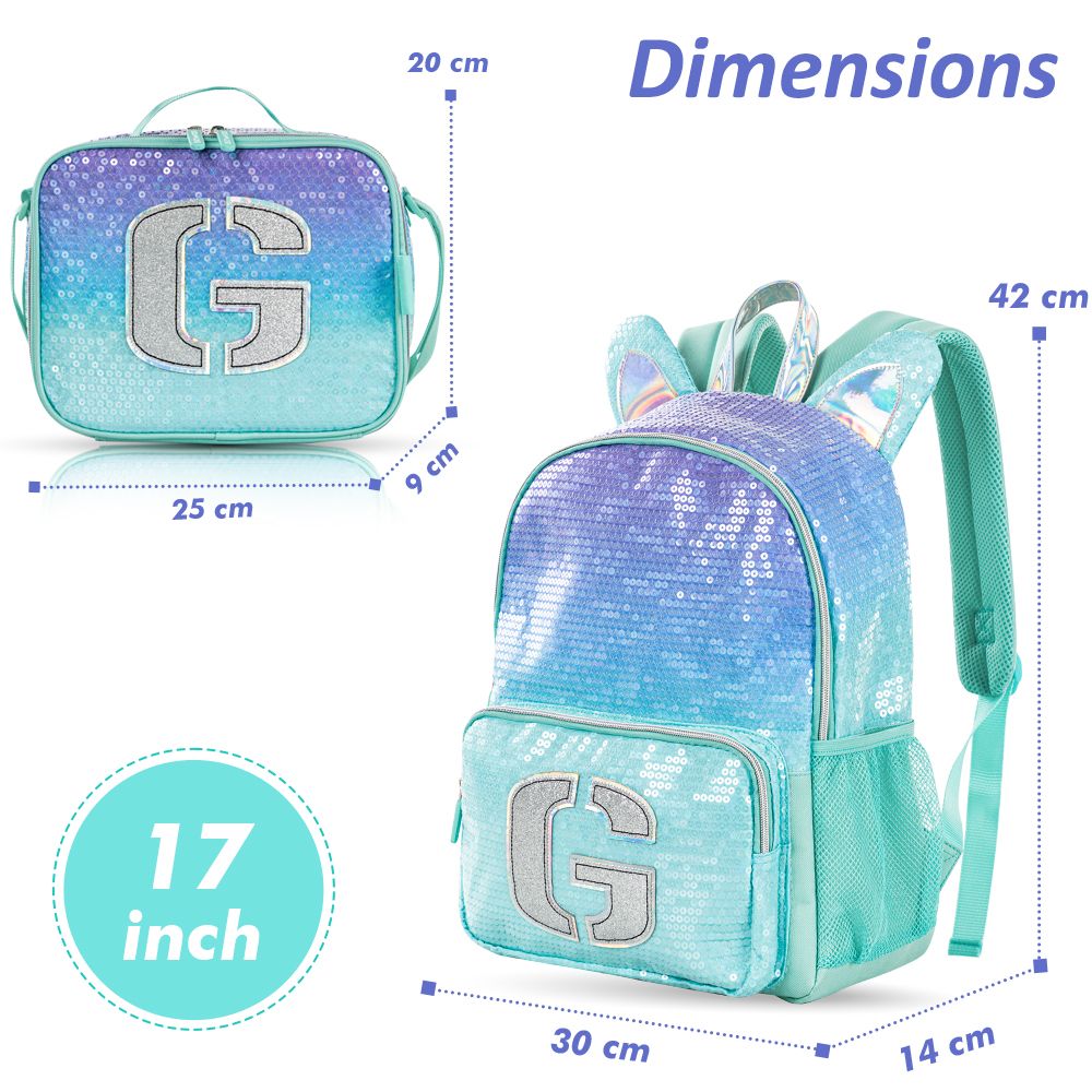 - 3-piece glittery set with backpack, lunch bag, and pencil case