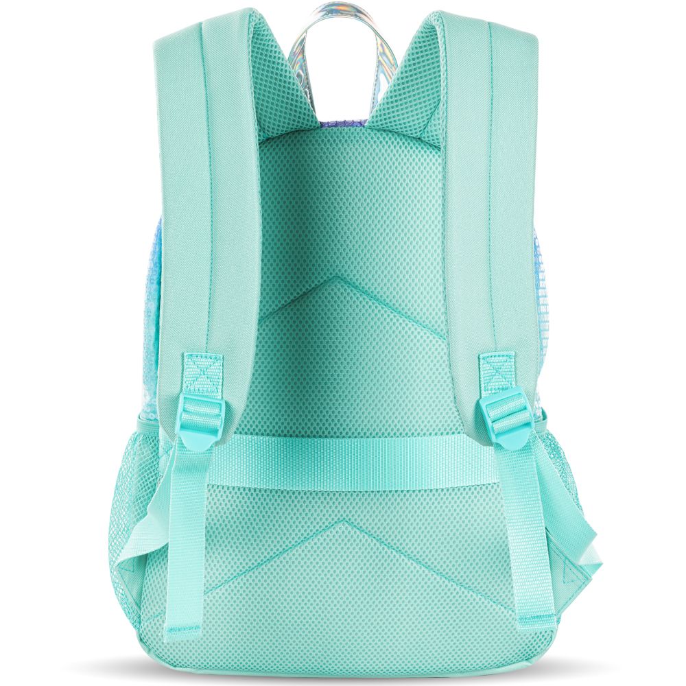 Sparkle every school day with the Eazy Kids 3-in-1 Girl Glitter Backpack Set, designed for young trendsetters who love shimmer and style. This 17-inch backpack includes a spacious main compartment, a padded 14-inch laptop sleeve, a front zip pocket, and dual side pockets—ideal for books, gear, and gadgets. Crafted from durable lightweight polyester, the backpack also features padded adjustable shoulder straps and a breathable back panel for comfort. It’s trolley-compatible and includes a special belt to attach to Eazy Kids 2- or 4-wheel trolleys. The set includes a matching insulated lunch bag with a two-way carry handle and zipper closure for freshness, and a glittery pencil case for storing essentials. This stylish and functional combo is perfect for a complete back-to-school experience.