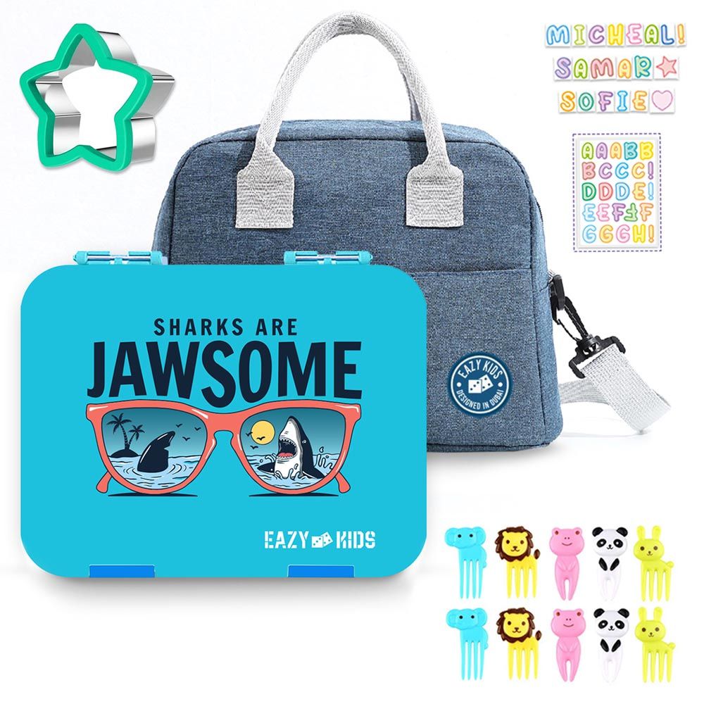 Make lunchtime exciting with the Jawsome Blue Bento Box from Eazy Kids. It features a 6-compartment layout, convertible to 4 with a removable tray. Crafted from BPA-free Tritan, it’s leakproof with silicone seals and a slant mouth opening.