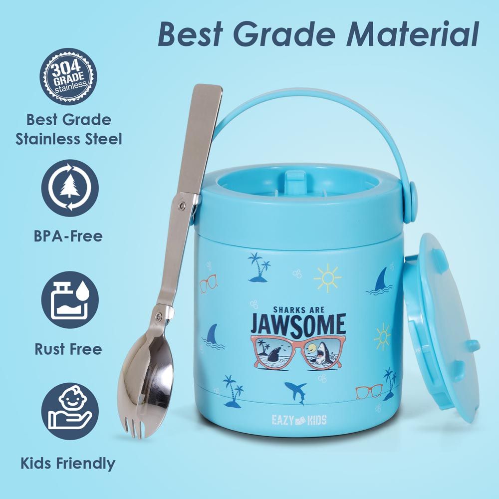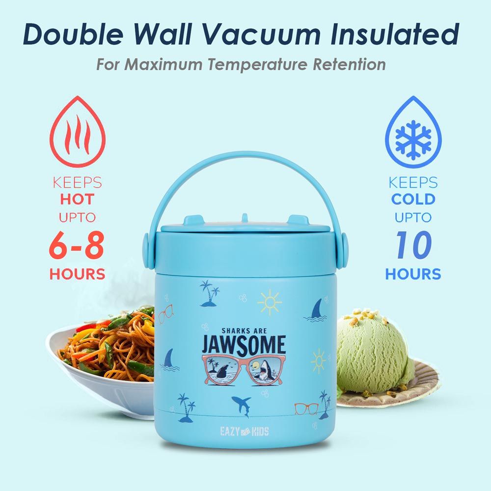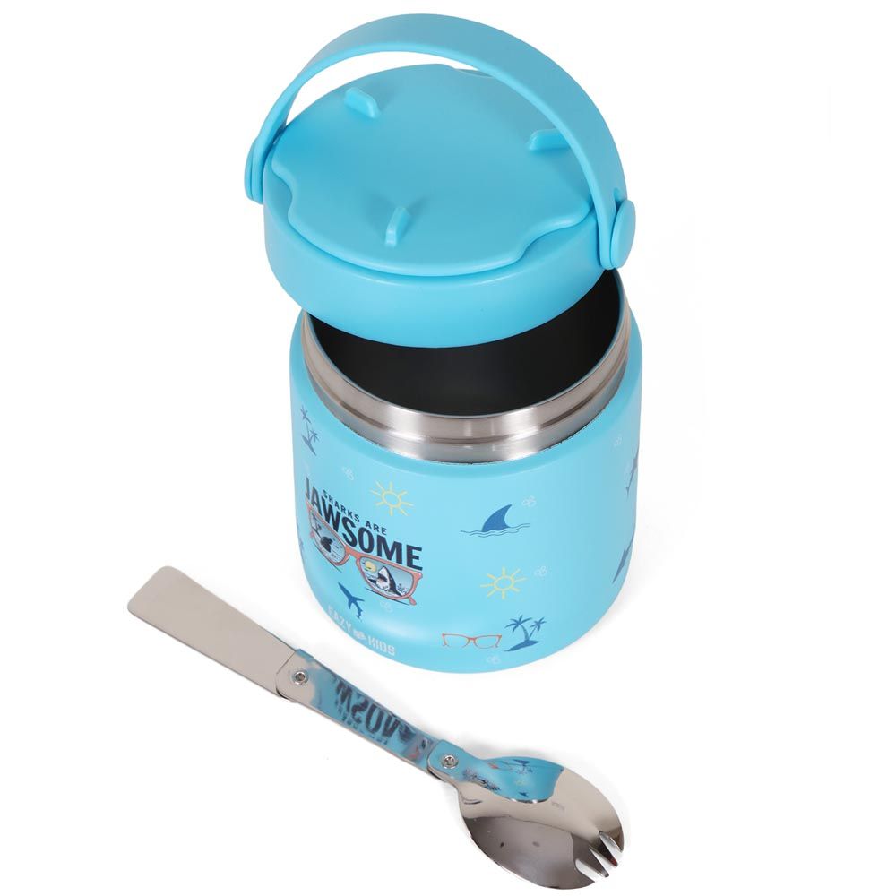 The Eazy Kids Jawsome Shark Insulated Food Jar in Blue holds up to 350ml and is perfect for maintaining the temperature of your child's meals. With an eye-catching shark design, it encourages kids to enjoy their food.