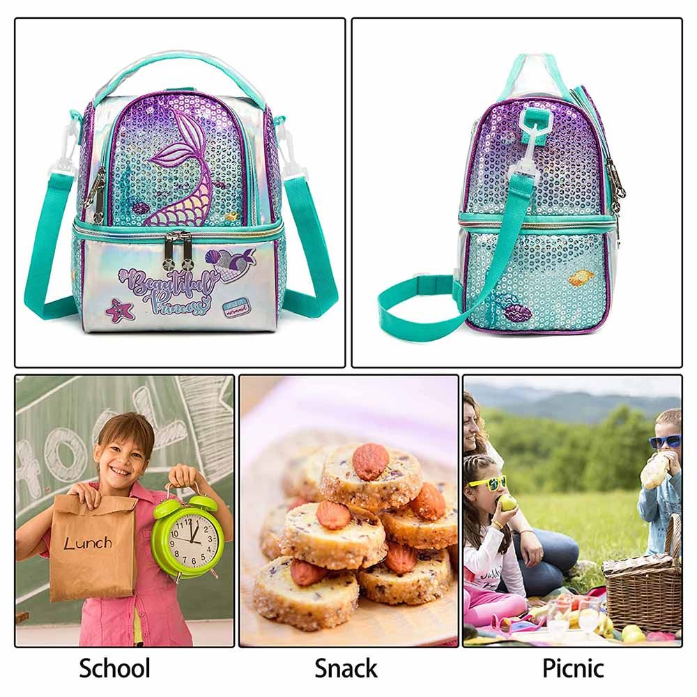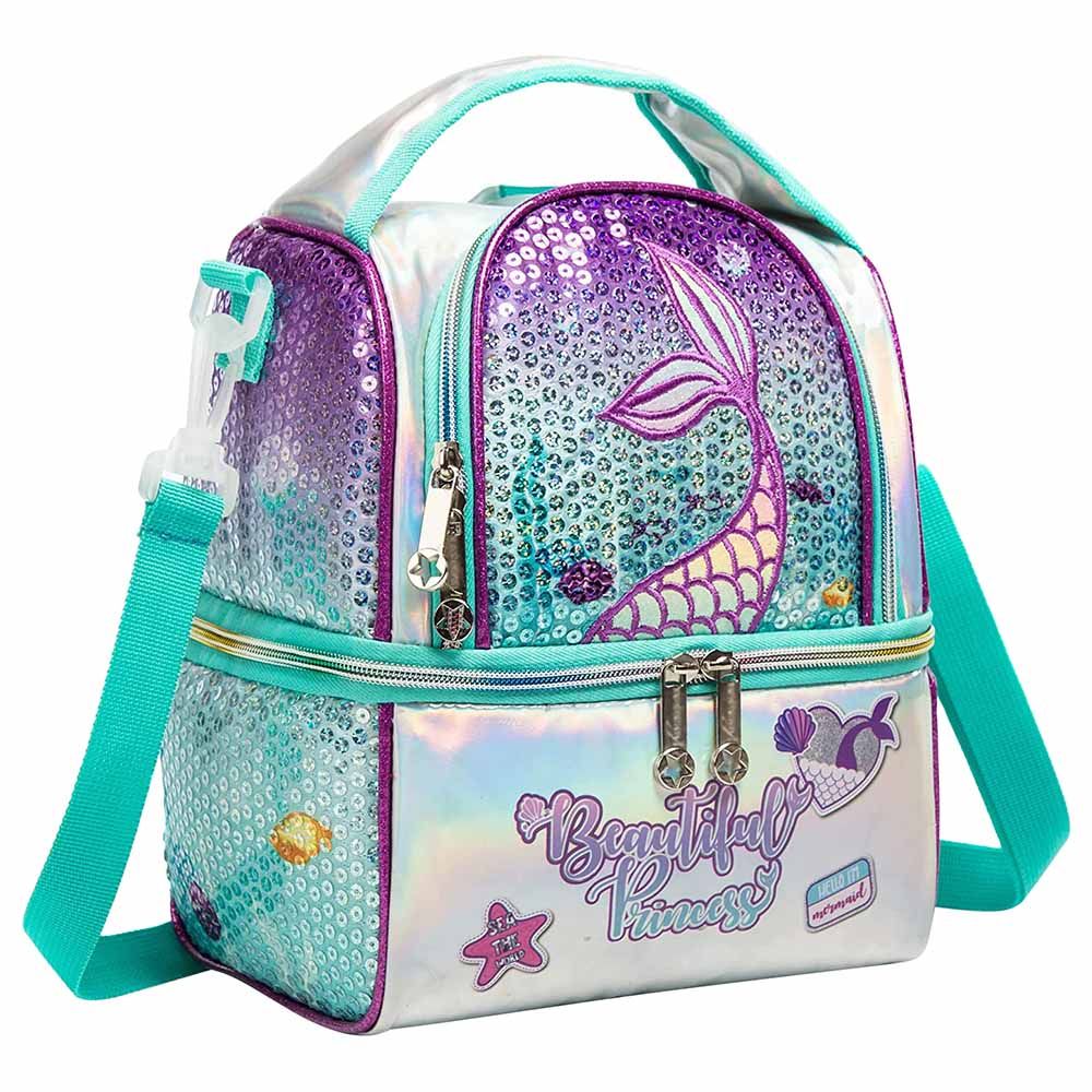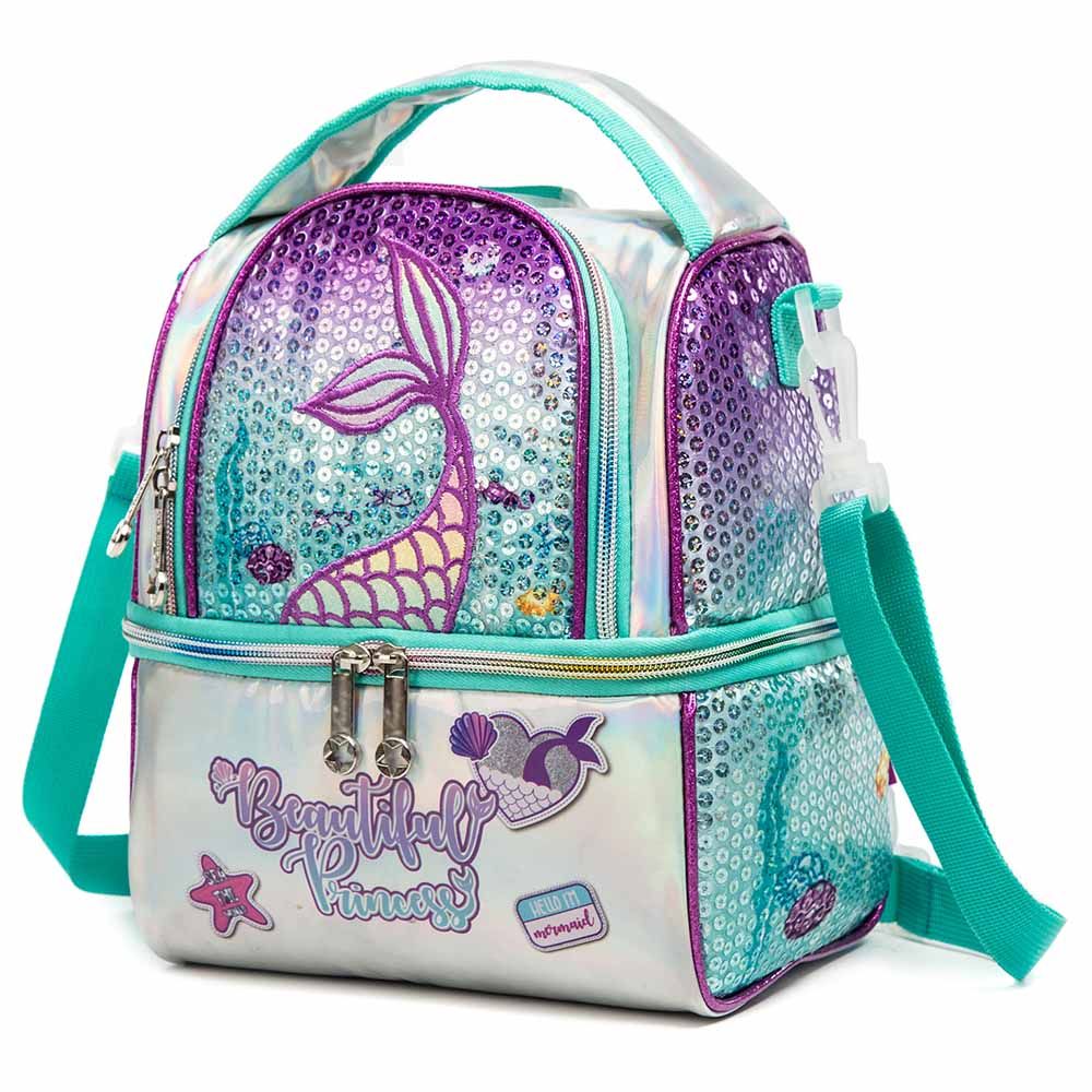 - Versatile insulated lunch bag with a charming mermaid theme, perfect for school, daycare, or outdoor adventures