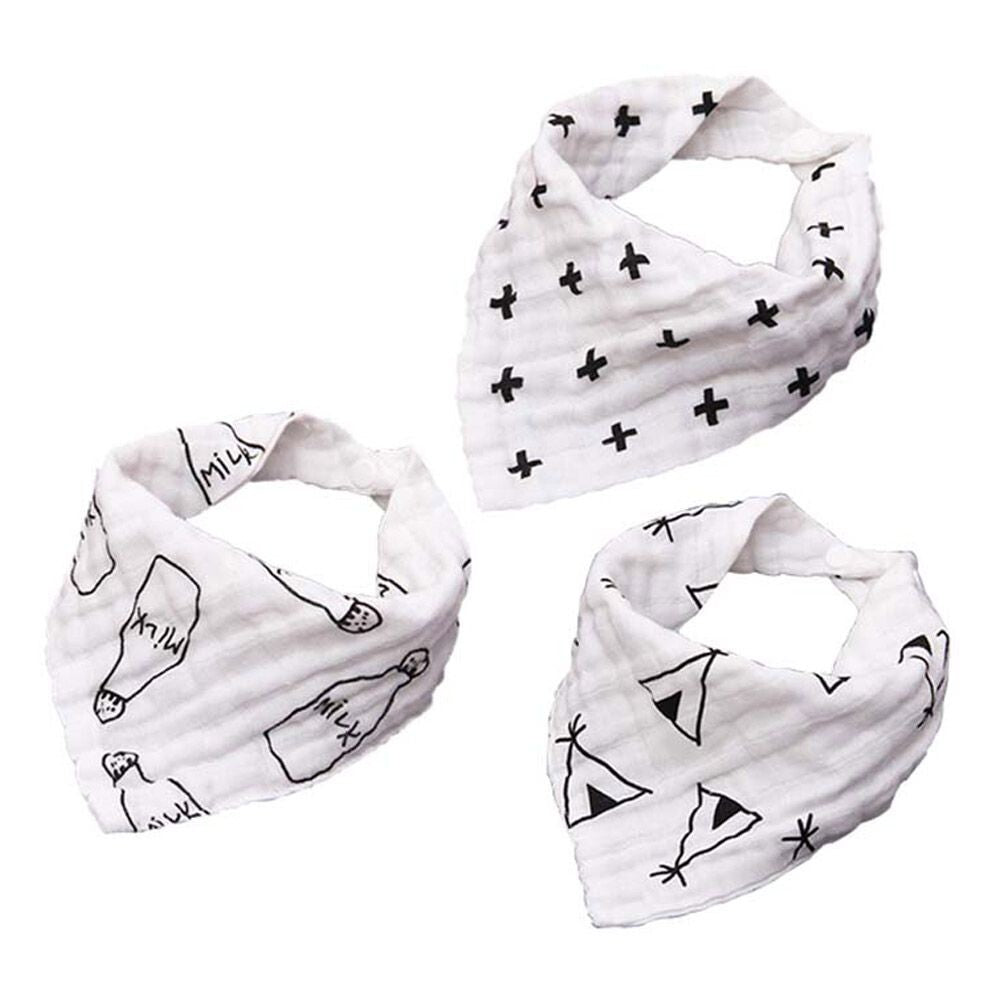 The adjustable snap closure ensures a snug yet comfortable fit as your baby grows. The monochrome designs are modern, gender-neutral, and match any outfit. Comes in a pack of 3 for daily rotation—ideal for teething, feeding, or everyday messes in style.
