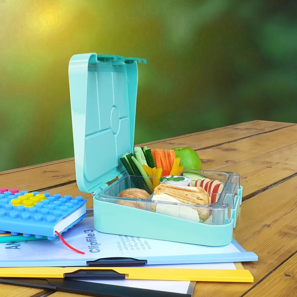 Designed for everyday school use, this Eazy Kids 6-compartment Bento Box in Blue features a fun PlayStation print. Made from BPA-free Tritan, it includes leakproof silicone seals and a slant mouth opening for easy access. Convertible to 4 compartments with a removable tray, it’s ideal for packing a variety of foods.