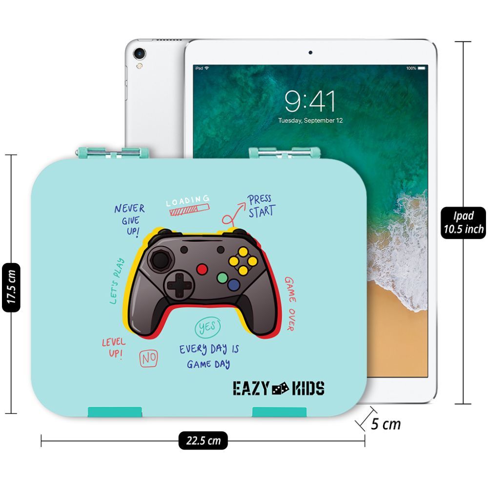 The Eazy Kids 6-Compartment Bento Lunch Box in Playstation Green is built for durability and functionality. Made from BPA- and BPS-free Tritan, it features a slant mouth opening for easier access. The leakproof design uses a top layer with removable silicone seals for each compartment, suitable for semi-liquid foods.