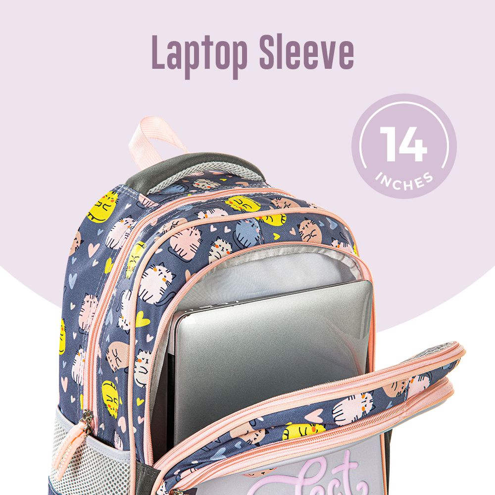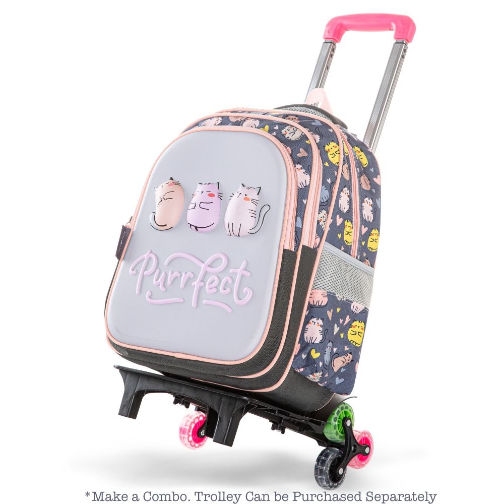 Step into school with confidence using the Eazy Kids 16-Inch Purrfect School Bag Set in Grey. Designed with a charming 3D kitten, this 20L backpack includes a soft grab handle, padded shoulder straps, cushioned back, and light reflectors for visibility. It also features a 14-inch laptop compartment, sturdy zippers, and trolley-compatible straps. The matching pencil case adds organized storage. Made from durable polyester, it’s lightweight and ideal for daily school use, offering both style and function.