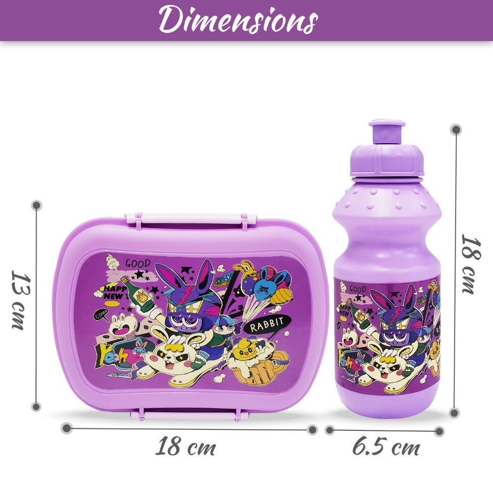 Eazy Kids Rabbit Lunch Box And Water Bottle - Purple