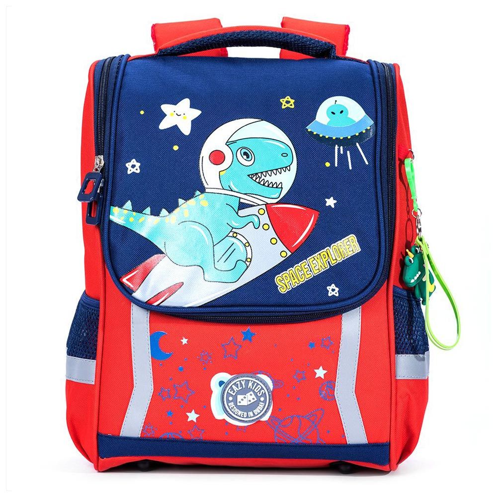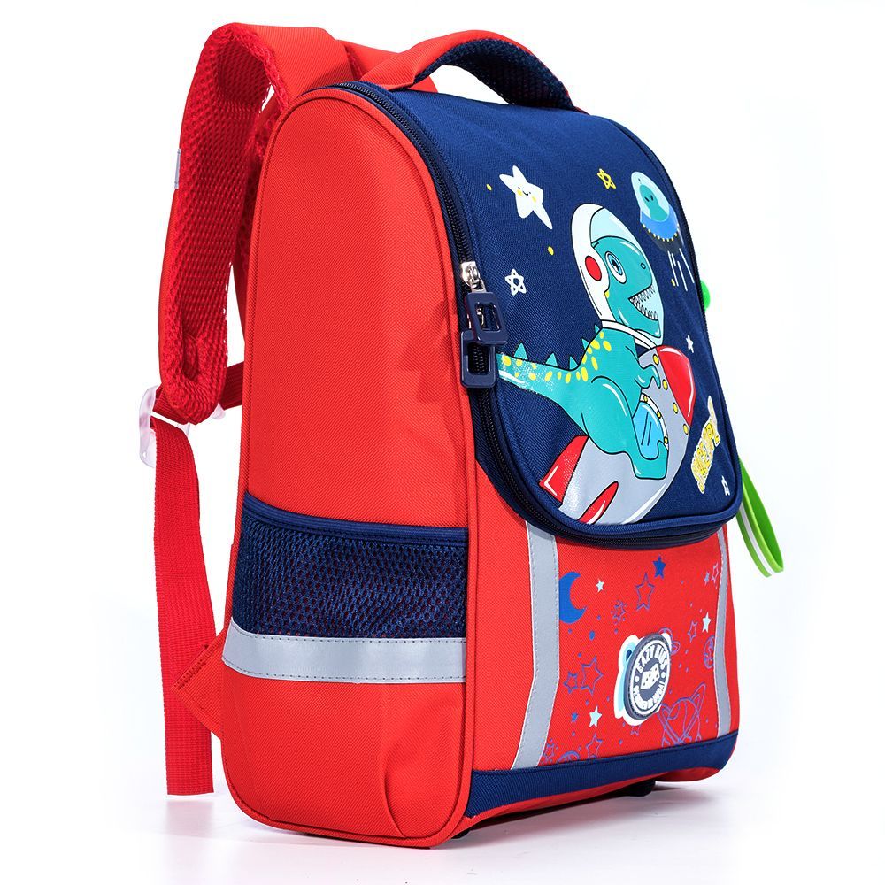 - 15Inch DinoinSpace school bag in blue with Ushaped twin compartments and tablet sleeve