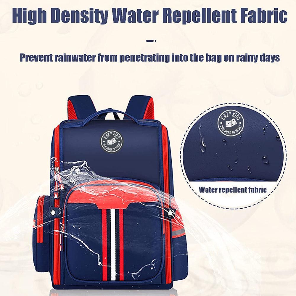 The 15-inch Eazy Kidz School Bag with Trolley offers unmatched convenience for young students. Featuring innovative 360-degree 3-wheel technology, the trolley glides effortlessly over stairs and flat surfaces alike. Constructed from lightweight aluminum alloy, it can bear weights up to 50 kg and includes a safety lock to keep the trolley stable.