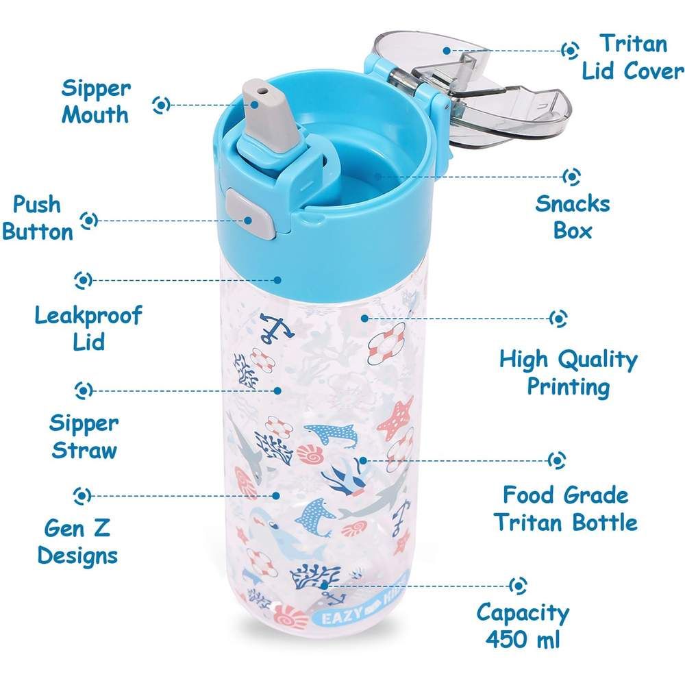 PACKING INCLUDES: 1*Eazy Kids Tritan Water Bottle(450ml) 1*Eazy Kids Lunch Box(850ml) 1*Eazy Kids Lunch Box(650ml)