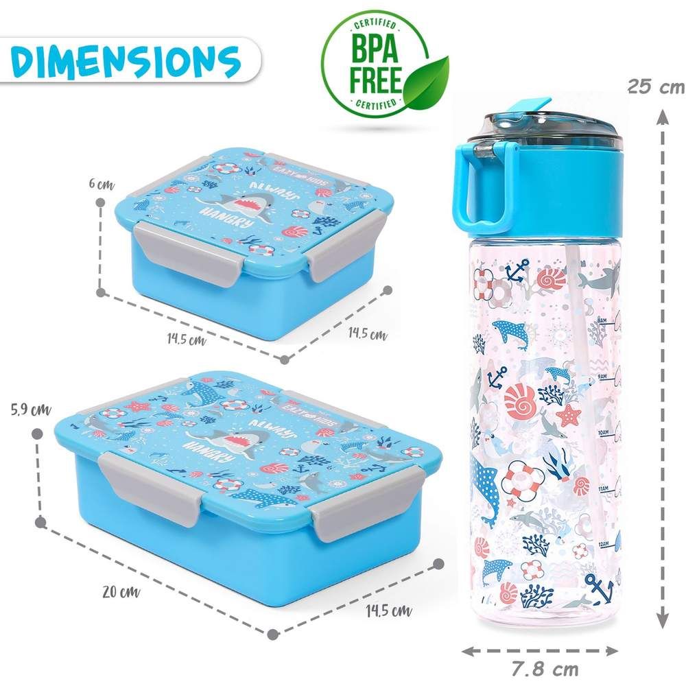 Product Dimensions: Water Bottle: 7.8 x 8.6 x 25 , Lunch Box1: 20 x 14.5 x 5.9 , Lunch Box2: 14.5 x 14.5 x 6.0 cm