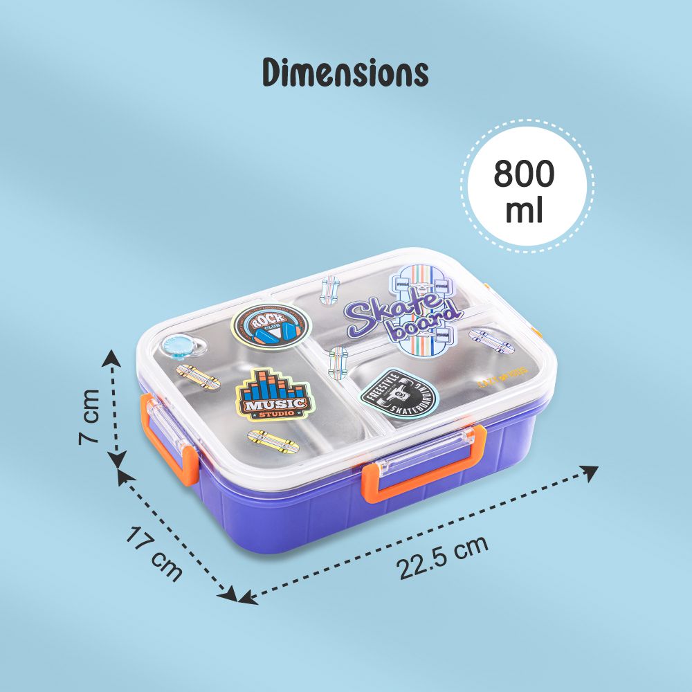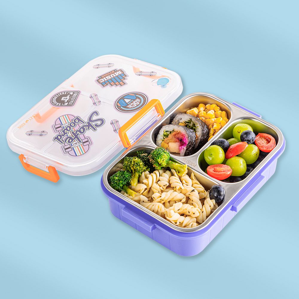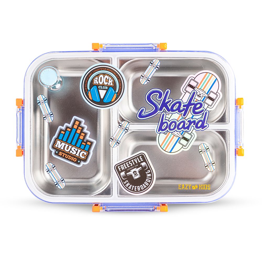 Eazy Kids Skate Board 3 Compartment Stainless Steel Bento Lunch Box 800ml - Purple