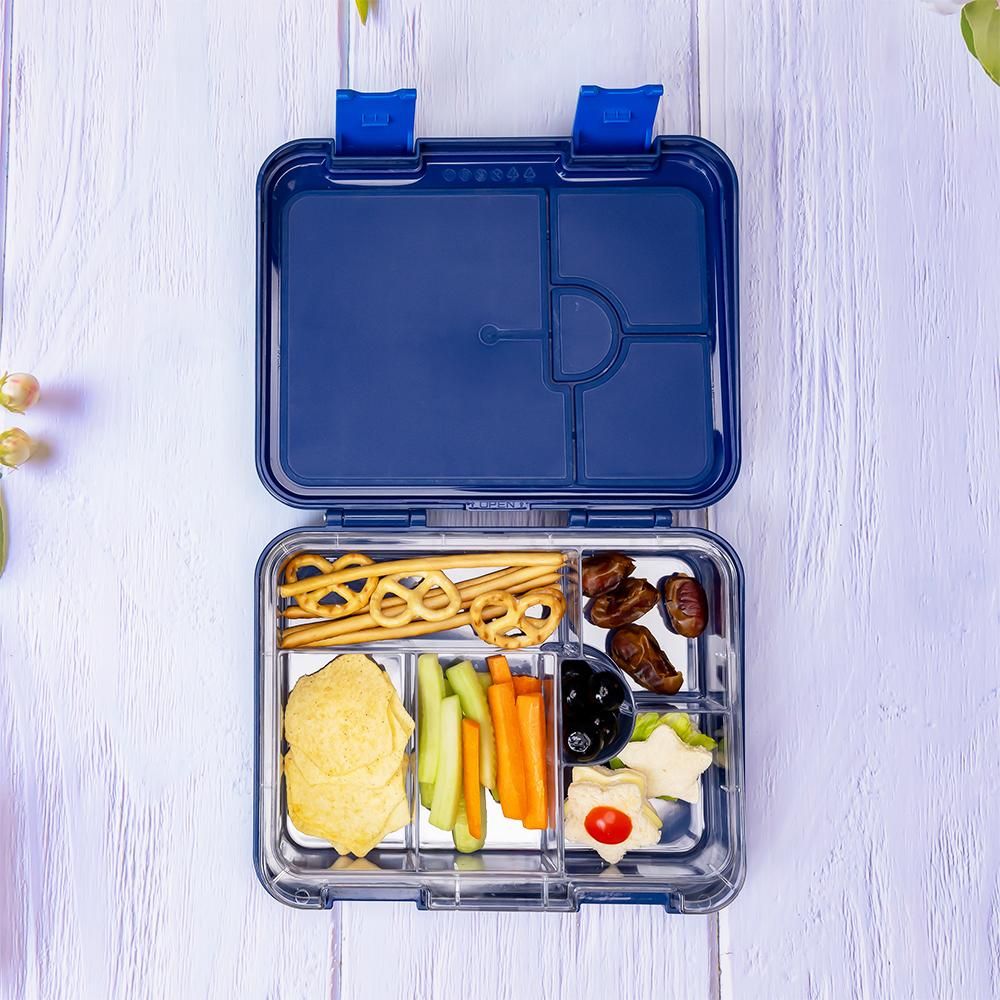 The Eazy Kids Bento Lunch Box is a game-changer for school meals. Made of BPA- and BPS-free Polypropylene, this durable lunch box features a unique slant-mouth design for easier access. With 4 compartments ideal for a variety of foods, including yogurts and sauces, each section is lined with a leakproof silicon seal. The top layer and lower lid are removable for hassle-free cleaning. Microwave and dishwasher safe, it also includes fun extras—sandwich cutters and fruit picks—for added lunchbox creativity. Perfect for creating balanced, fun meals your kids will love.