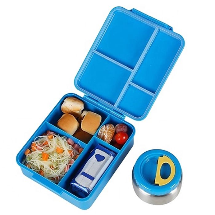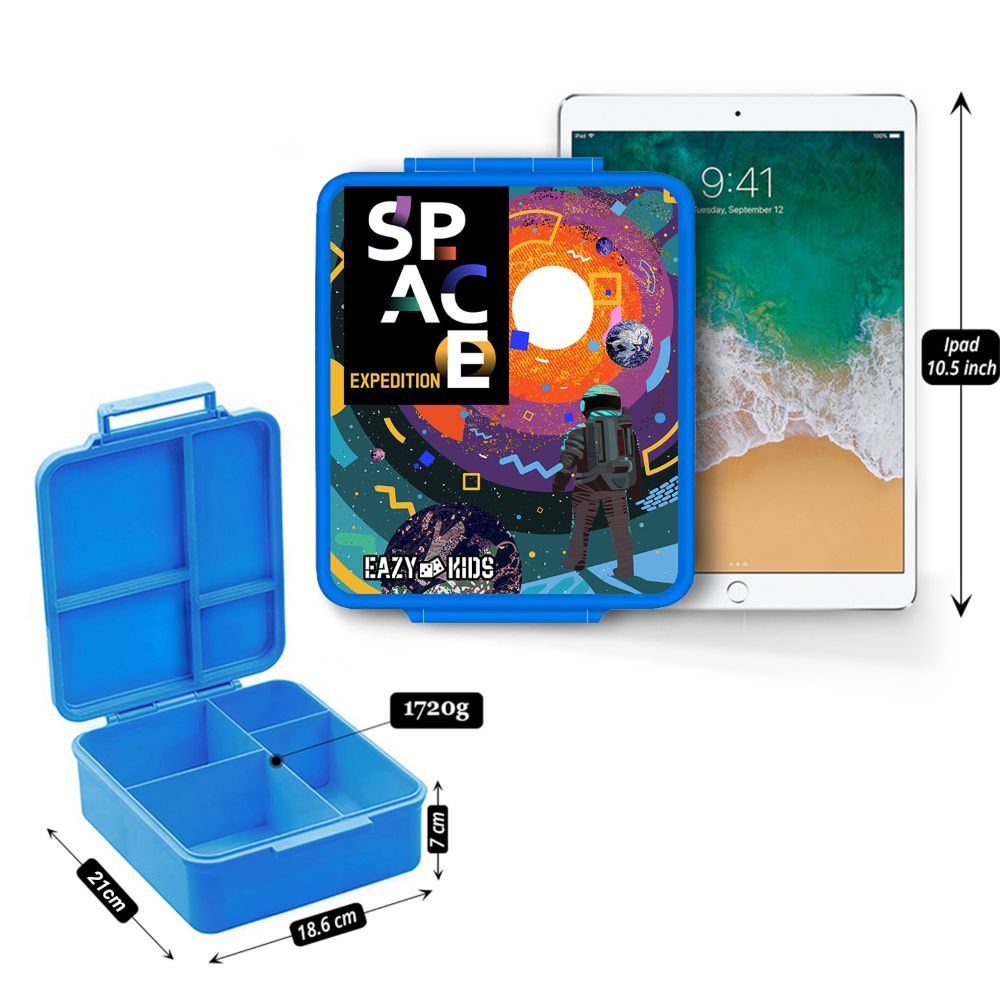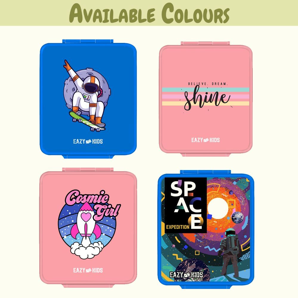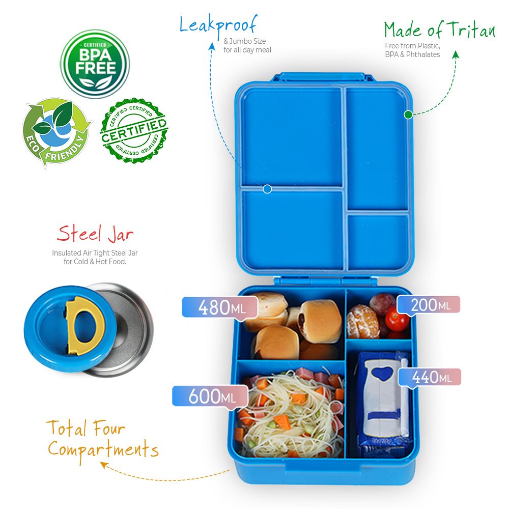 The Eazy Kids Jumbo 4 Compartment Bento Lunch Box with Insulated Jar in Blue is designed for versatile and organized meals on the go. It features four spacious compartments to separate different foods, keeping flavors fresh and distinct. The insulated jar keeps soups or hot meals warm for hours, it can keep the food warm for 5-7 hours and keep it cold for at least 12 hours. Made from durable, BPA-free materials, it’s leak-proof and easy to clean. Perfect for school or outings, this lunch box adds a fun, bright pink touch to mealtime.