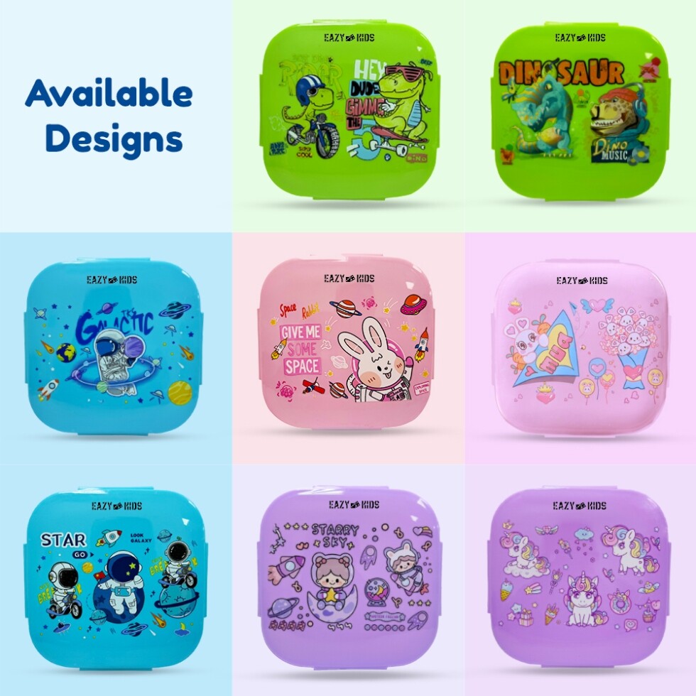 - Comes in three compartments and Spoon and Fork with great color and great Prints. Eazy Kids Lunch Set is lightweight to carry to school, suitable for a balanced meal.