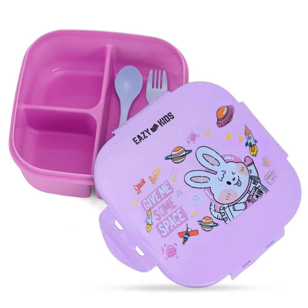- Comes in three compartments and Spoon and Fork with great color and great Prints. Eazy Kids Lunch Set is lightweight to carry to school, suitable for a balanced meal.