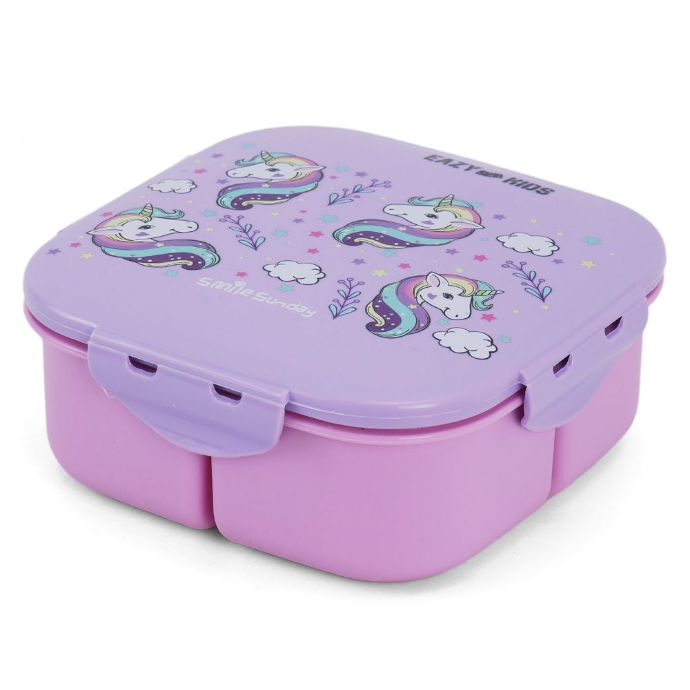 Eazy Kids Square Bento Lunch Box - Unicorn Purple