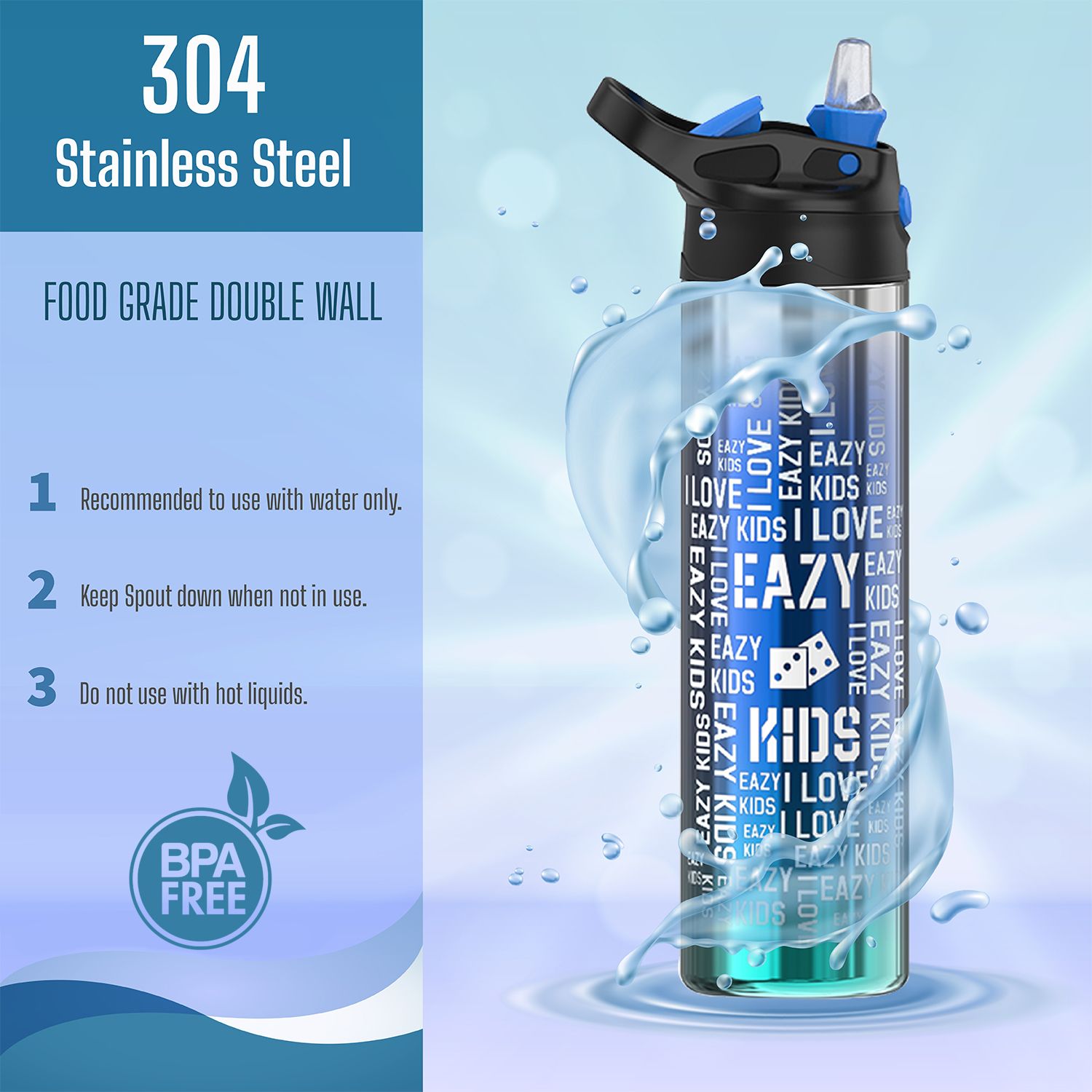 Hydration Just Got Cooler! Keep your child hydrated with the Eazy Kids Stainless Steel Water Bottle. Made from double-walled, 304 stainless steel, this bottle maintains your drink's temperature and is BPA and phthalate-free. The straw lid folds in to stay clean and pops out when it's time to drink. With a 530ml capacity, it ensures your child has enough water for the day. Lightweight, durable, and adorned with fun prints, this bottle is freezer safe and easy to clean.