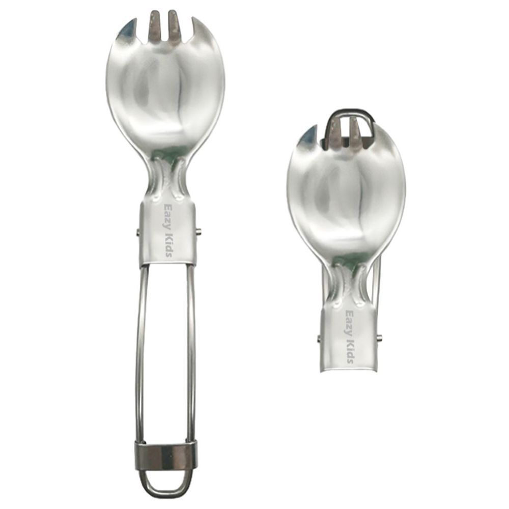 - Stainless steel folding spoon and fork combo.
