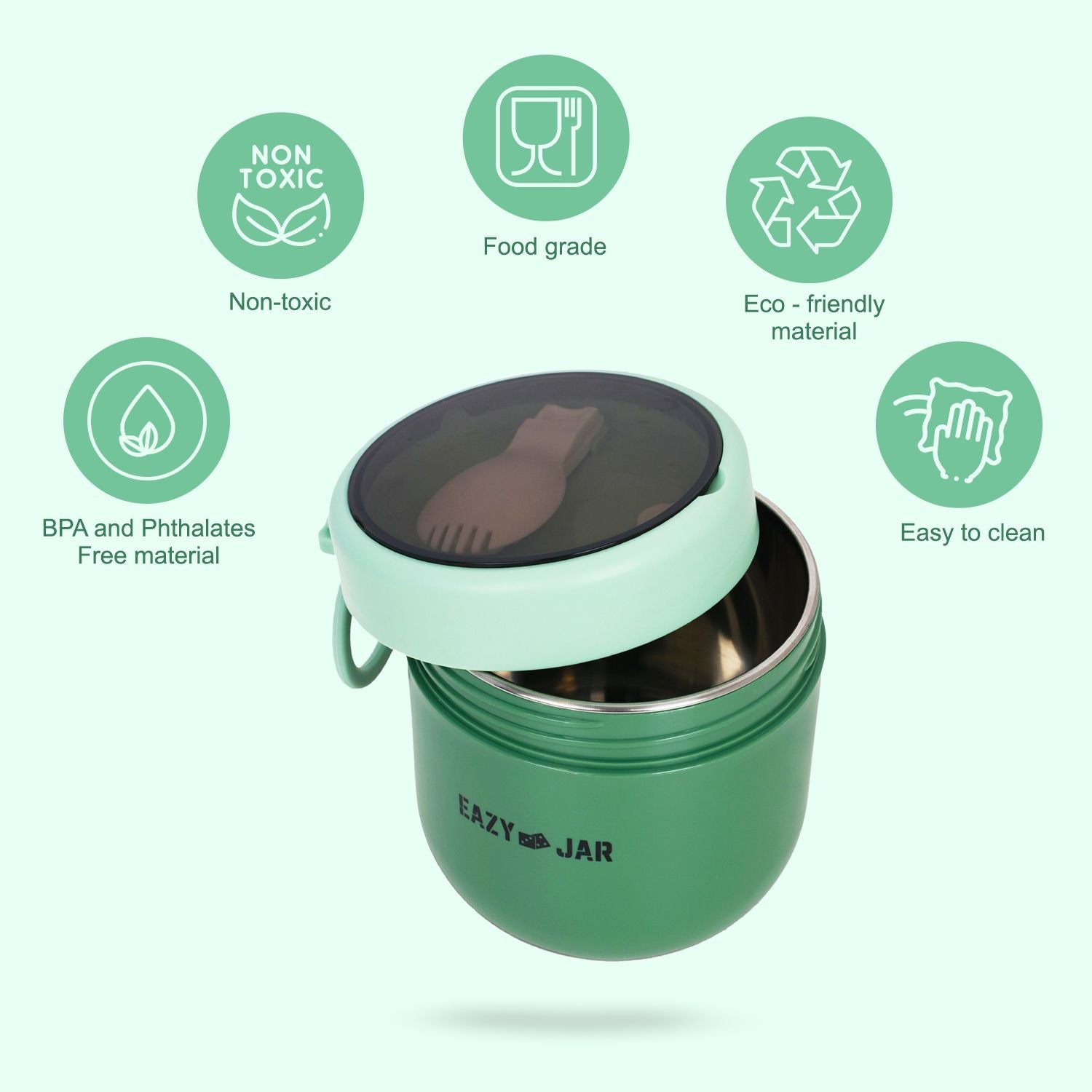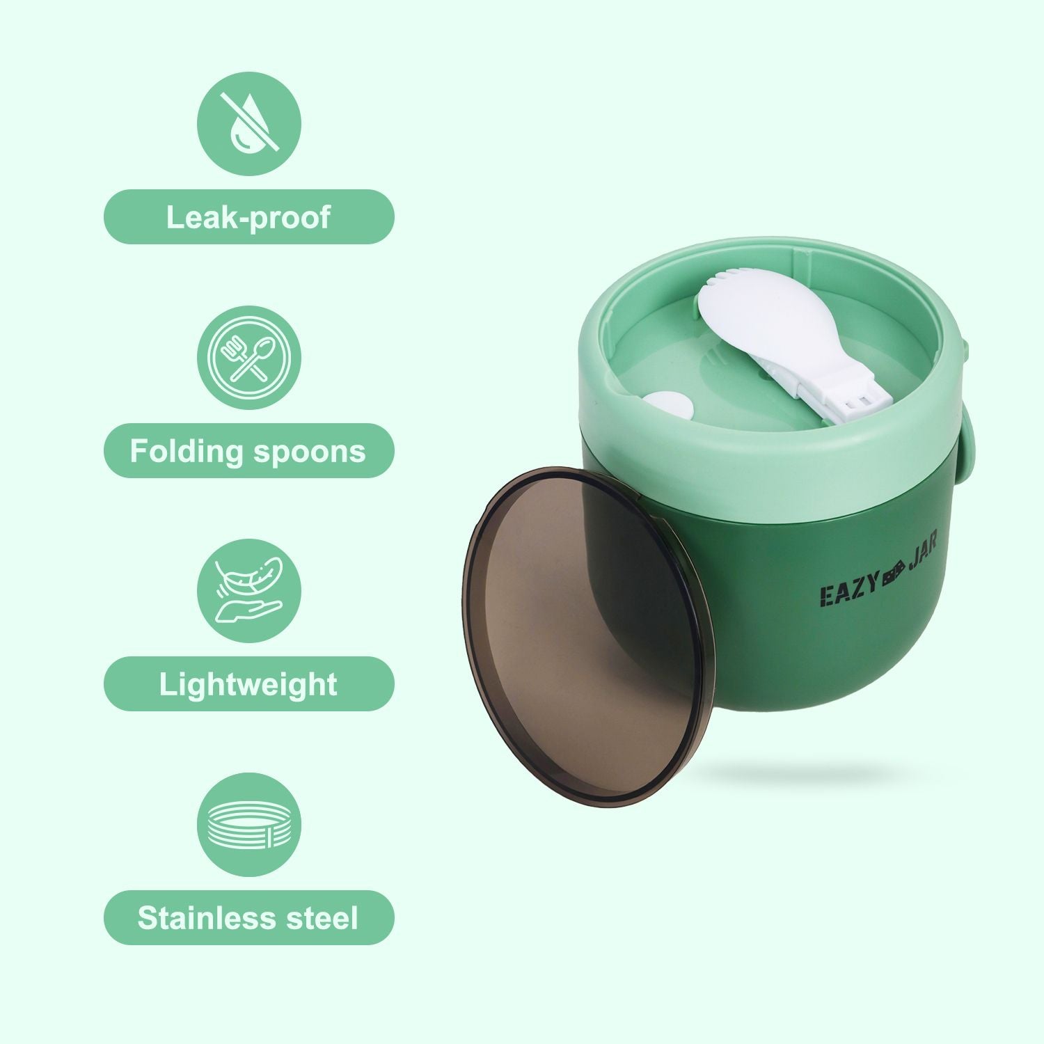 Eazy Kids Steel Lunch Box With Folding Spoon - Green