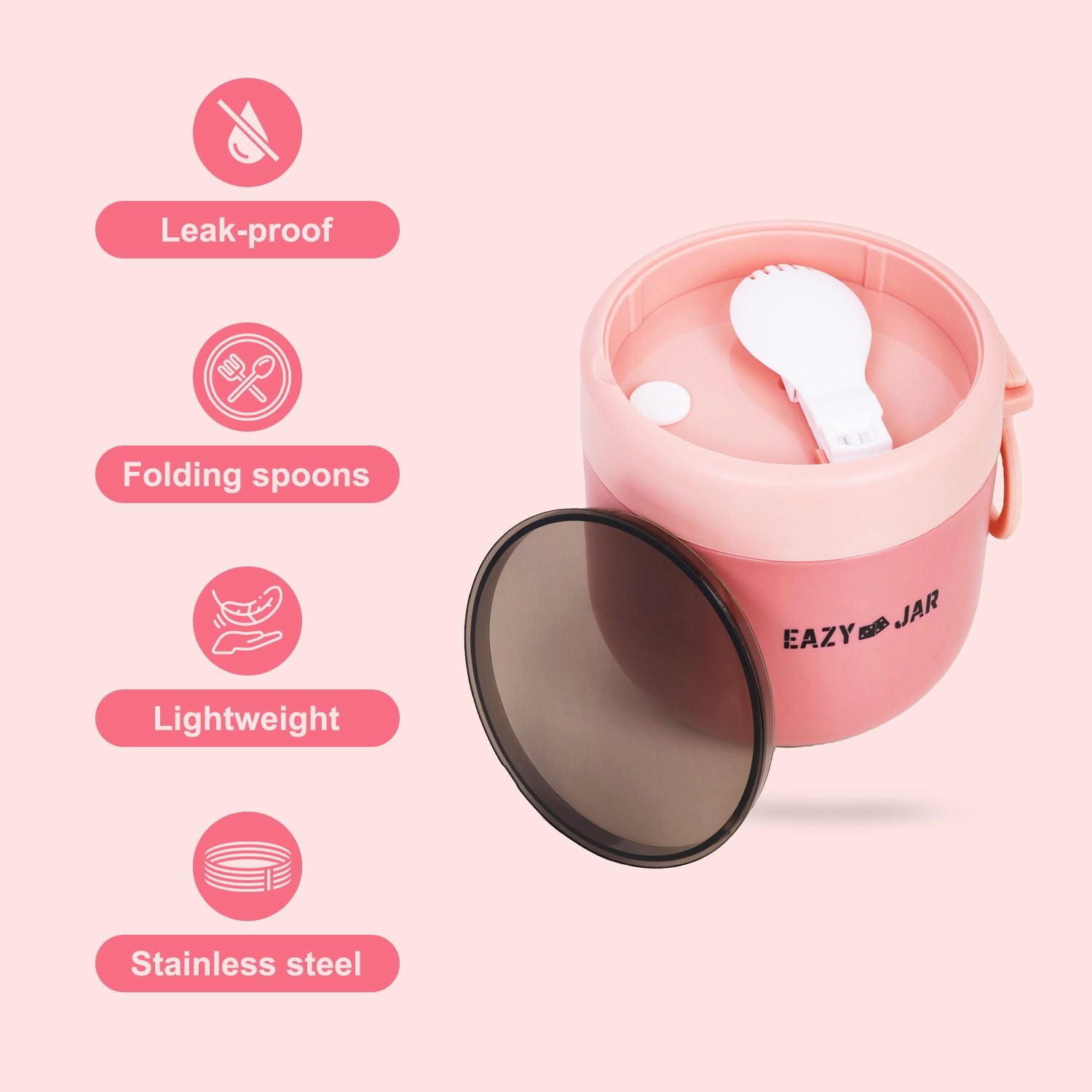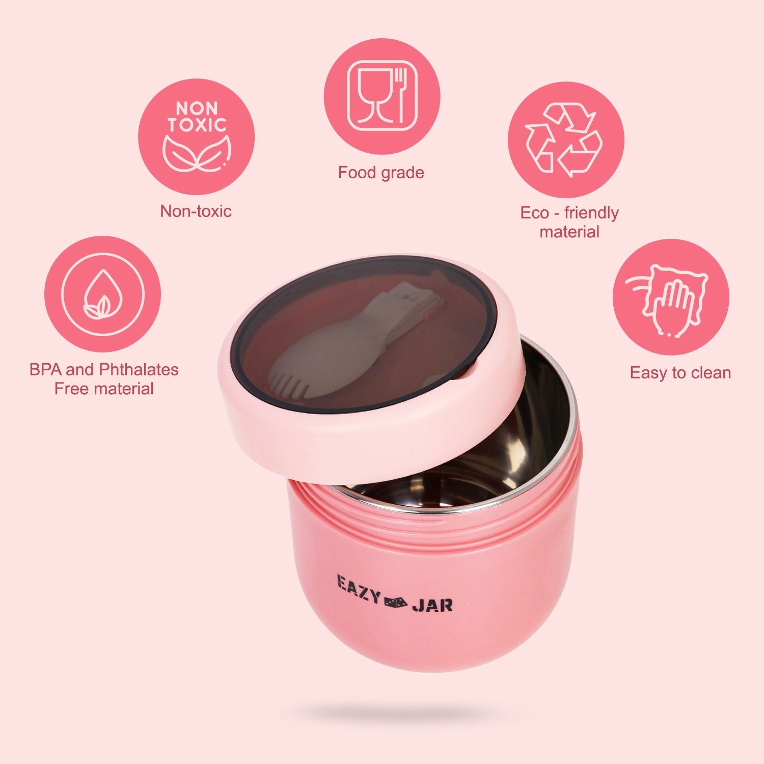 The Eazy Kids Steel Lunch Box with Folding Spoon brings fun and nutrition together for mealtime. Made with BPA- and BPS-free materials, it ensures safe food storage. It includes two compartments for a balanced meal and comes with a high-quality folding spoon for convenience. Durable and strong, the lunch box features a vibrant color and compact size, making it perfect for school or travel. Pair it with an Eazy Kids sipper for a coordinated, healthy lunchtime combo.