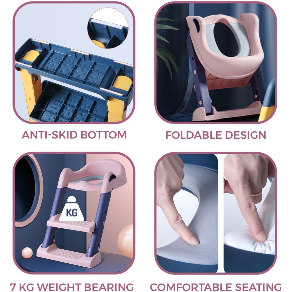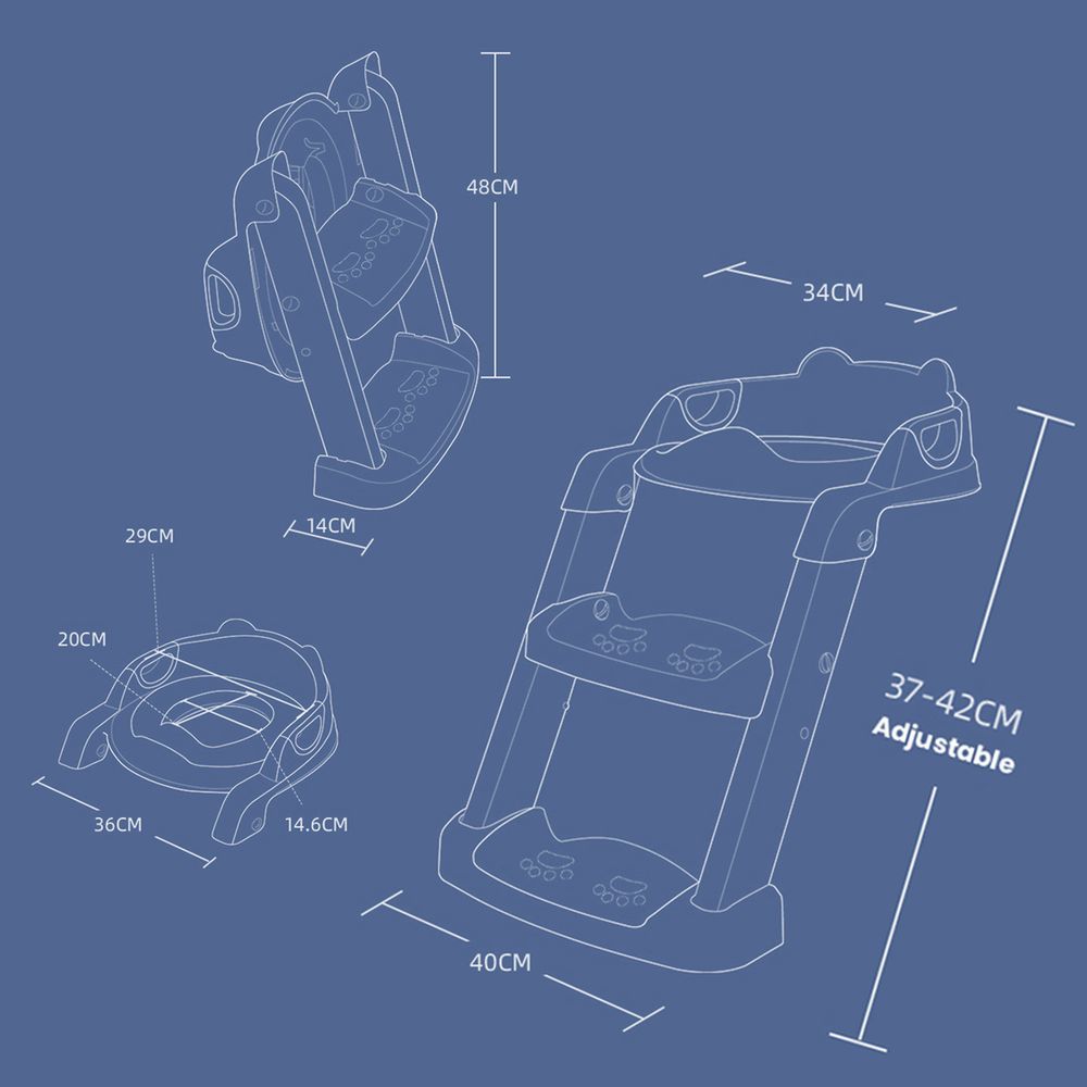 The Eazy Kids Step Stool Foldable Potty Trainer Seat is a practical and child-friendly solution for potty training toddlers. Made from durable, non-toxic materials, this trainer features an adjustable height ladder, anti-slip foot pads, and side handles for added safety and ease of use.