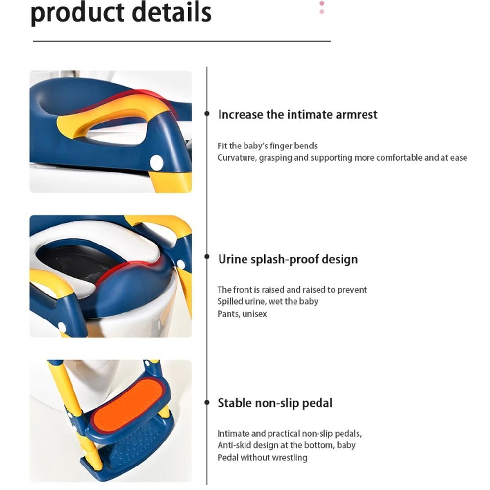- A foldable potty training seat with step stool for toddlers aged 1–7 to use the toilet independently.