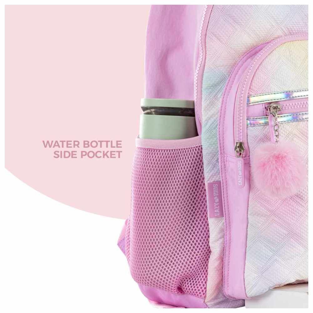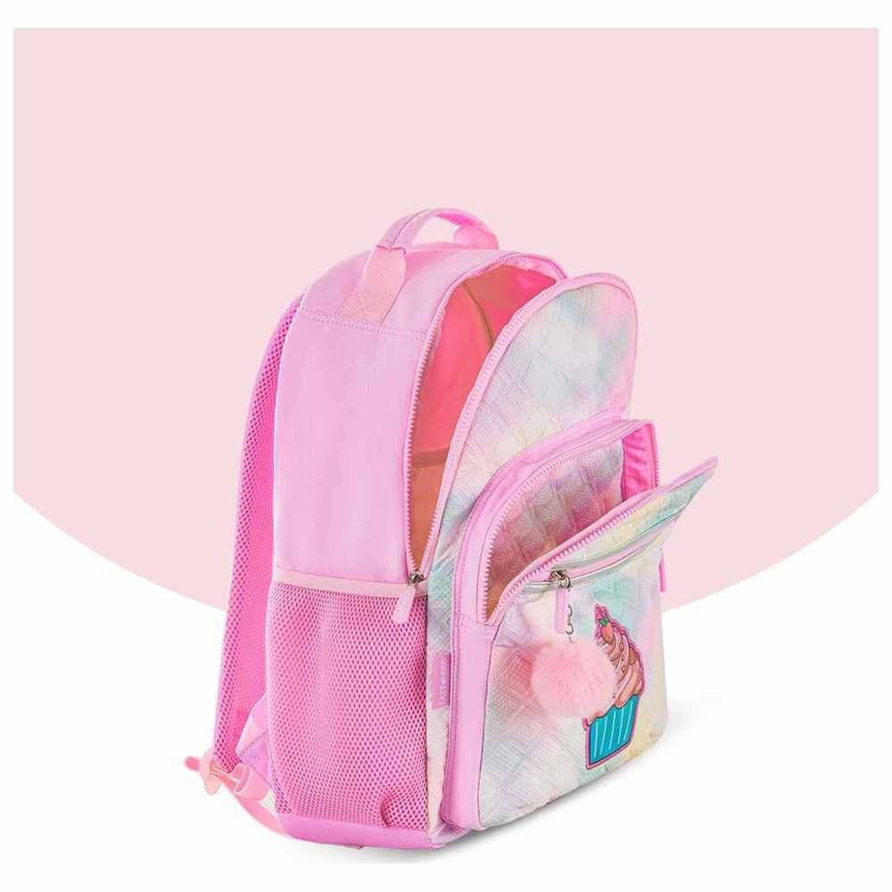 Add sweetness to school days with the Eazy Kids Sugar Pop 17-inch backpack set, featuring a backpack, insulated lunch bag, and pencil case—all designed in a playful cupcake pink theme. The spacious backpack offers a large main compartment, a padded 14-inch laptop pocket, front zippered and side pockets for water bottles or essentials, adjustable padded straps, and a breathable back panel for comfort. It’s trolley-compatible with an attachable belt for effortless transport. The insulated lunch bag keeps food fresh and includes a two-way carry handle. The pencil case is compact yet roomy with a secure zipper. Made of durable polyester, this vibrant set is perfect for young students. Specs: 17 inches / 21L; Weight: 0.5 kg; Dimensions: 32 x 15 x 44 cm.