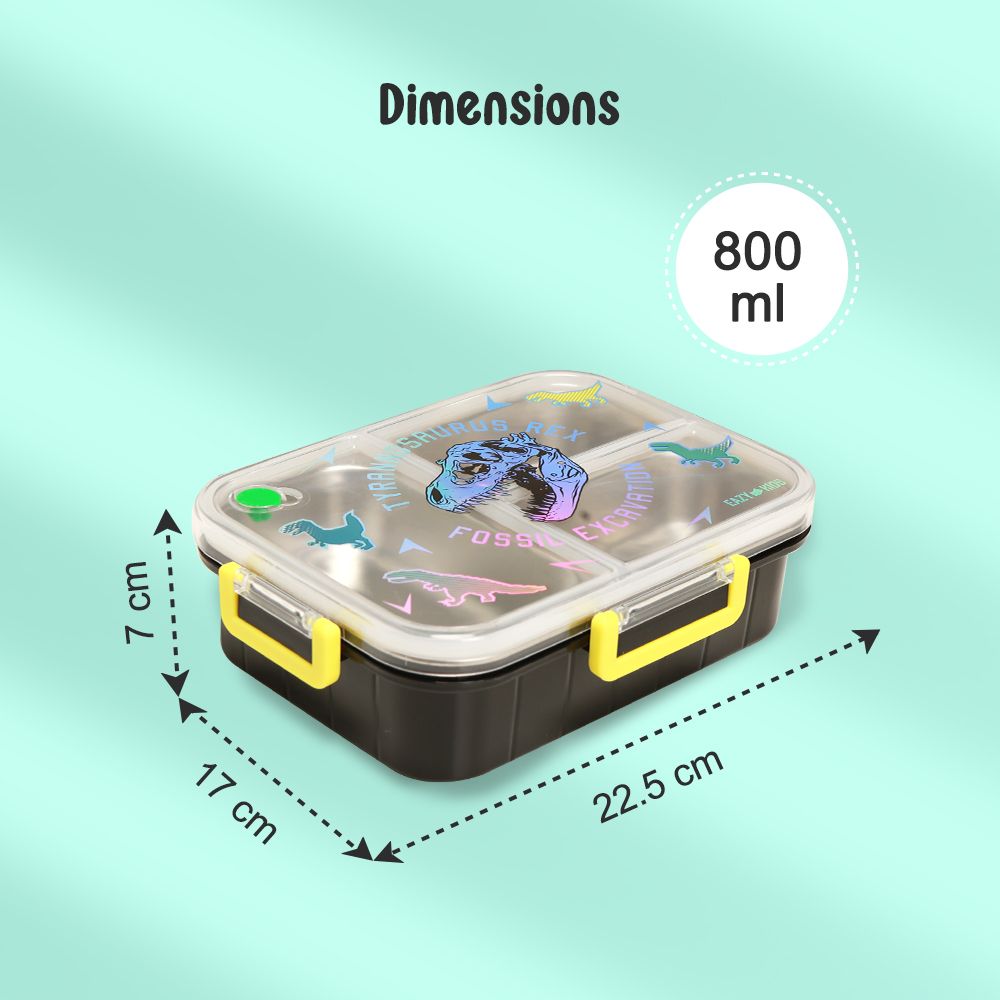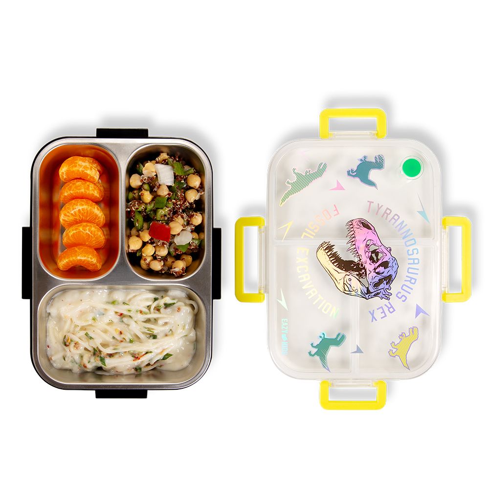 Eazy Kids T- Rex 3 Compartment Stainless Steel Bento Lunch Box 800ml - Purple