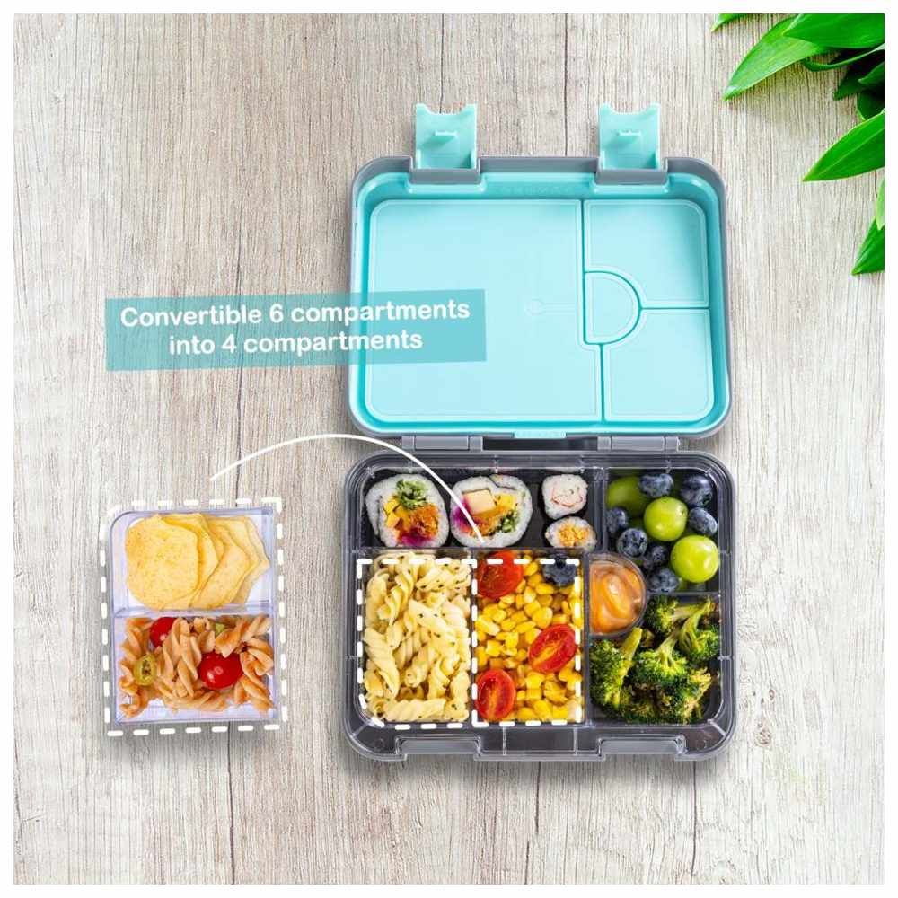 - Flexible 4-to-6 Compartment Design : Features a smart, removable tray that easily transforms the lunch box from four to six compartments-perfect for any meal type, big or small.