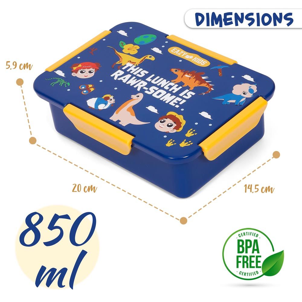 - Dinosaur-themed lunch box with 850 ml capacity.