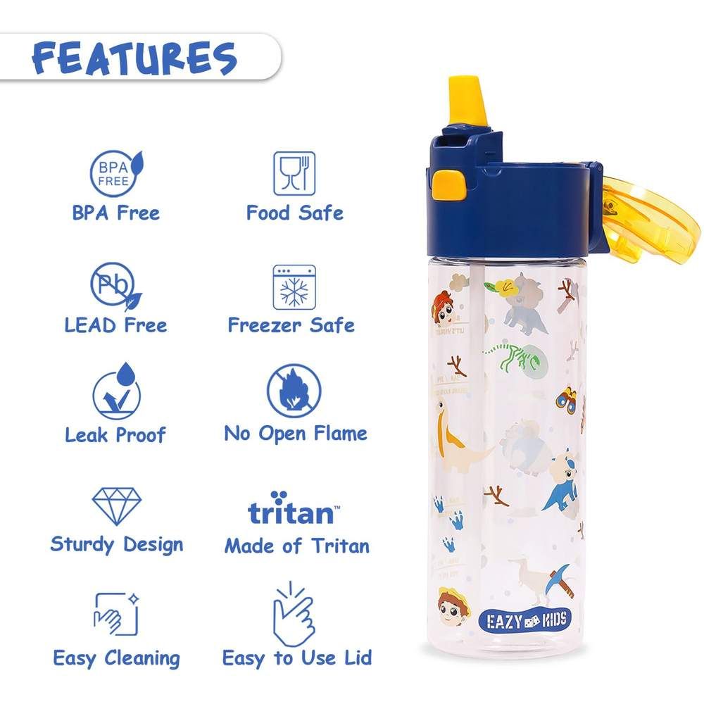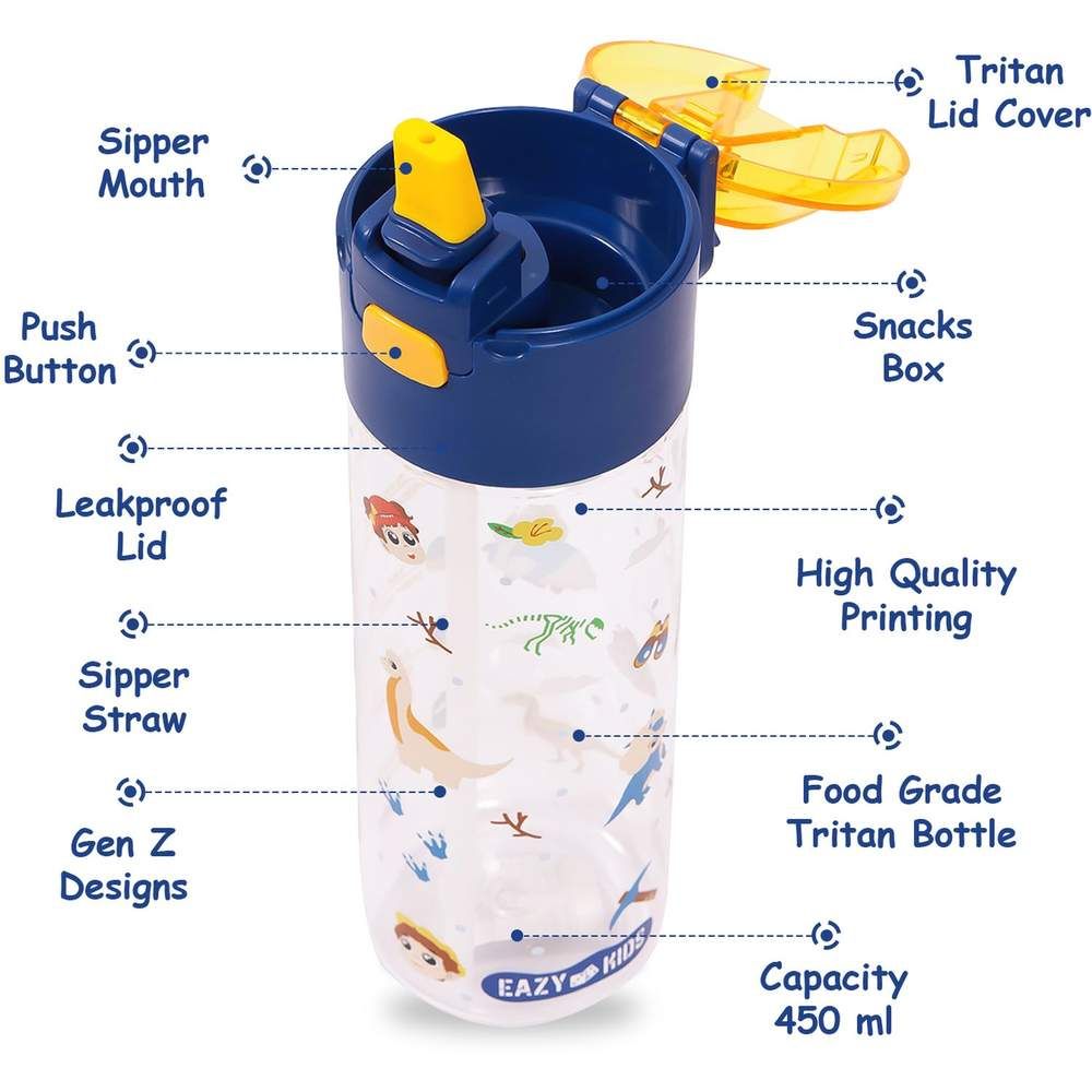 We make Hydration and Meal time fun! Fill Up your kids day with Eazy Kids Meal Box Set and Eazy Kids Drinkware Water Bottle . Eazy Kids Lunch Box Set and Tritan Water Bottle made with BPA and Phthalates Free material non-toxic, food grade & eco-friendly. The Capacity of Water Bottle is 450ml to keep your Kid full day hydrated and Tiffin Box Pair is 850ml & 650ml respectively for a Balanced Nutritious Meals, Lunch Box Set comes with 4 Clasp lock & Sipper and Both Lunch Box are lined with silicon which makes it completely leakproof.