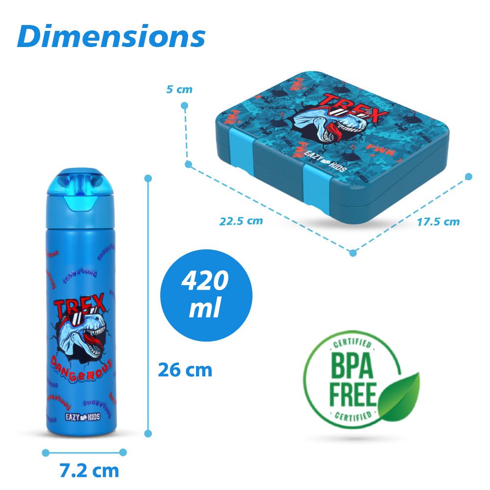 Product Dimensions : Lunch Box: 22.5 x 17.5 x 5 cm Water Bottle: 7.2 x 9.1 x 26 cm