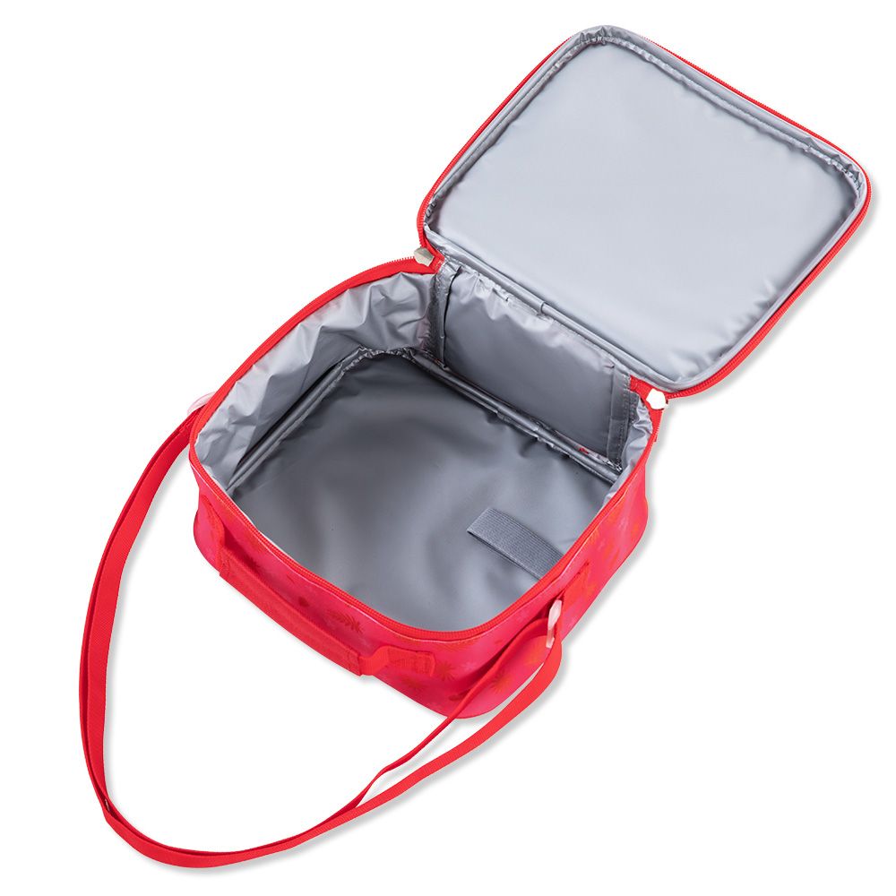 - 3-in-1 coordinated set with backpack, lunch box, pencil case, and key chain.